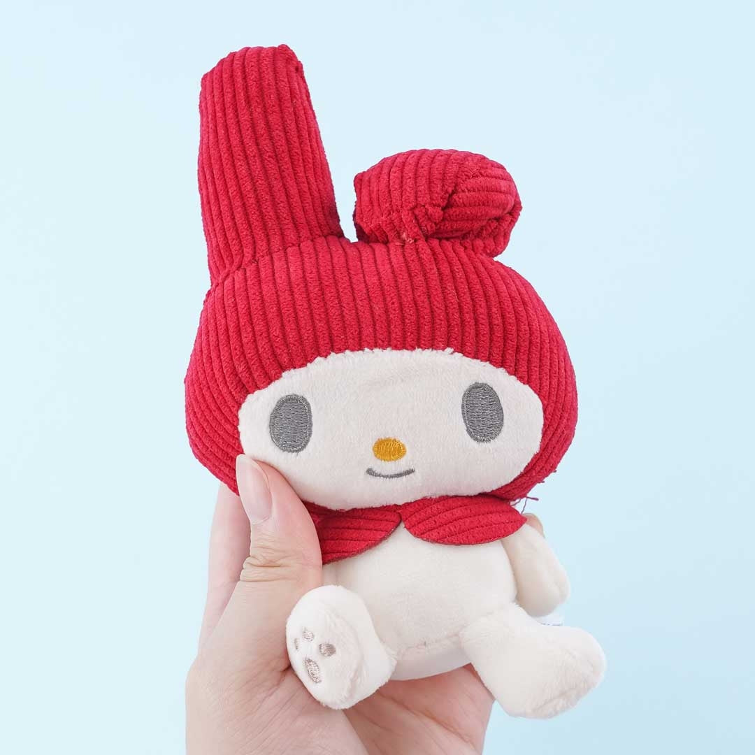 A kawaii medium-sized retro My Melody bean plushie with a corduroy hood