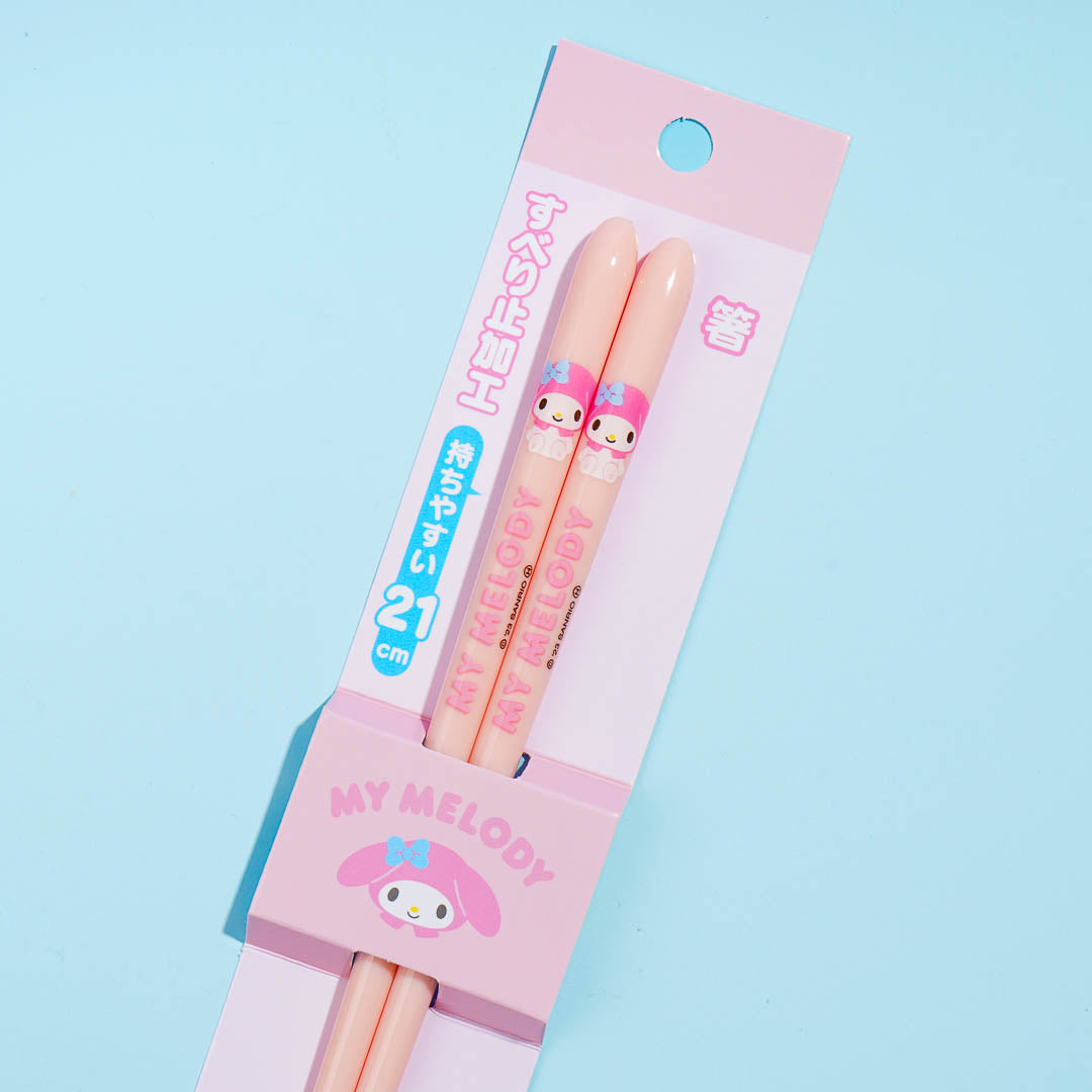 These kawaii chopsticks are illustrated with a sitting My Melody. Don't forget to bring them along to use during lunchtime! You don't have to worry about food slipping as these chopsticks have a non-slip coating.