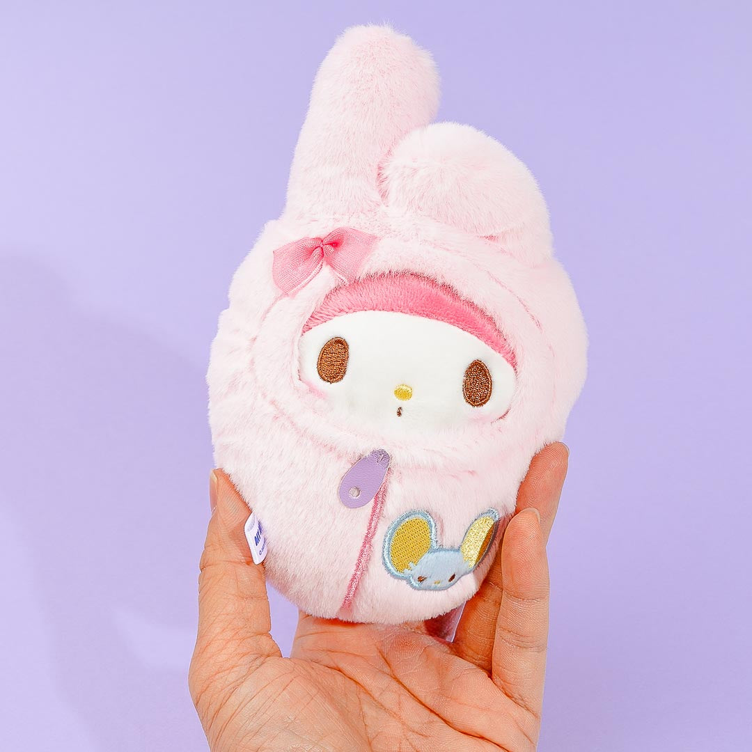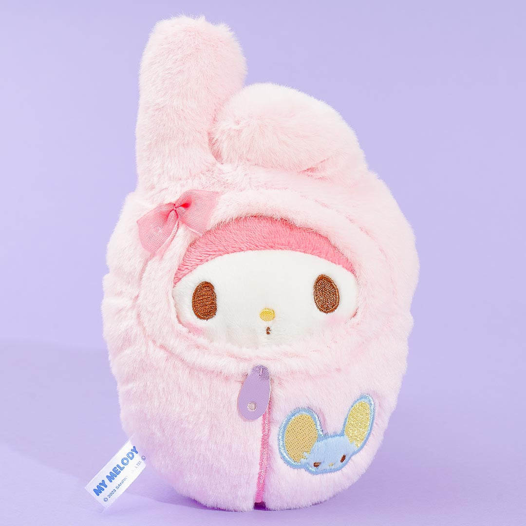 This super kawaii My Melody plushie comes in medium size and is snuggled inside a fluffy sleeping bag! Attach it to your favorite backpack to add a dose of cuteness!