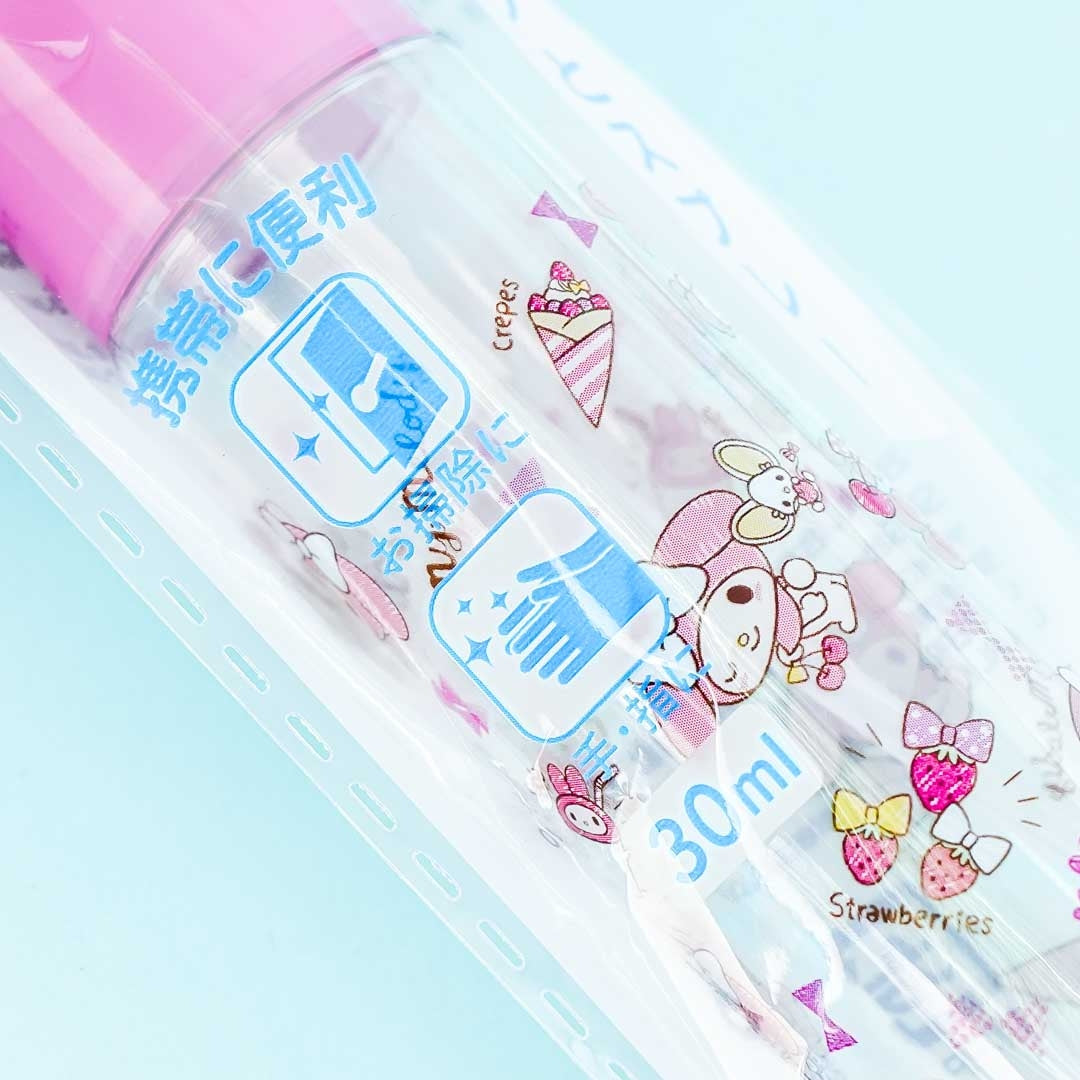 Place perfume inside this super kawaii transparent spray bottle! It's covered in prints of My Melody with crepes, strawberries, and other tasty treats. You can also use this spray bottle for alcohol with a concentration of less than 80%.