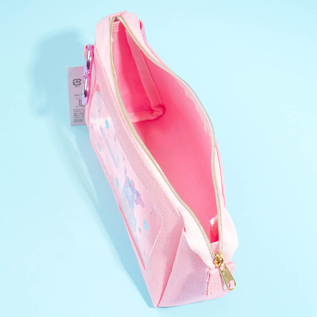 This super cute pouch features a kawaii illustration of My Melody with a soda pop theme! It's made of durable canvas fabric and has a cute plastic window that lets you see inside. Use this pouch to store your cosmetics!