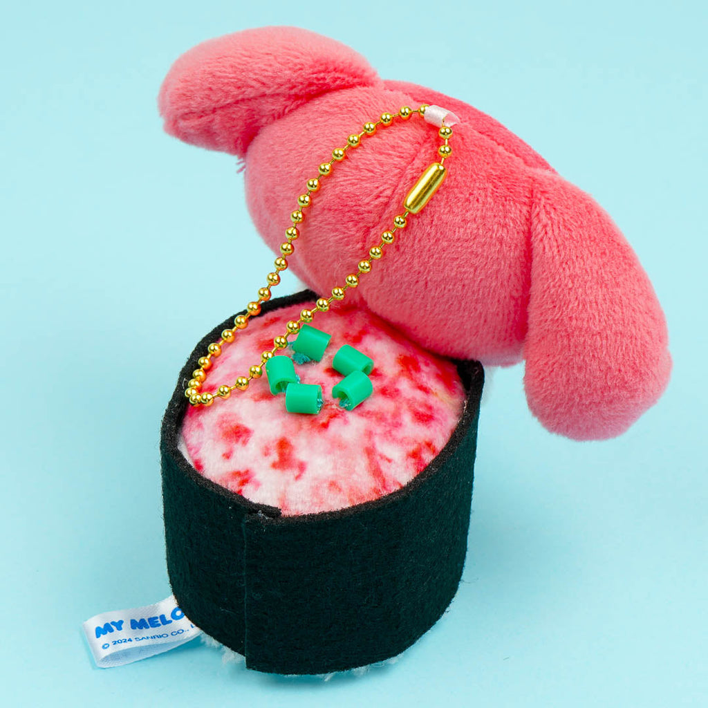 Make your backpack look extra cuter with this My Melody plushie charm that's shaped like nogitori or raw tuna sushi! It's soft and fluffy and comes with a removable ball chain.