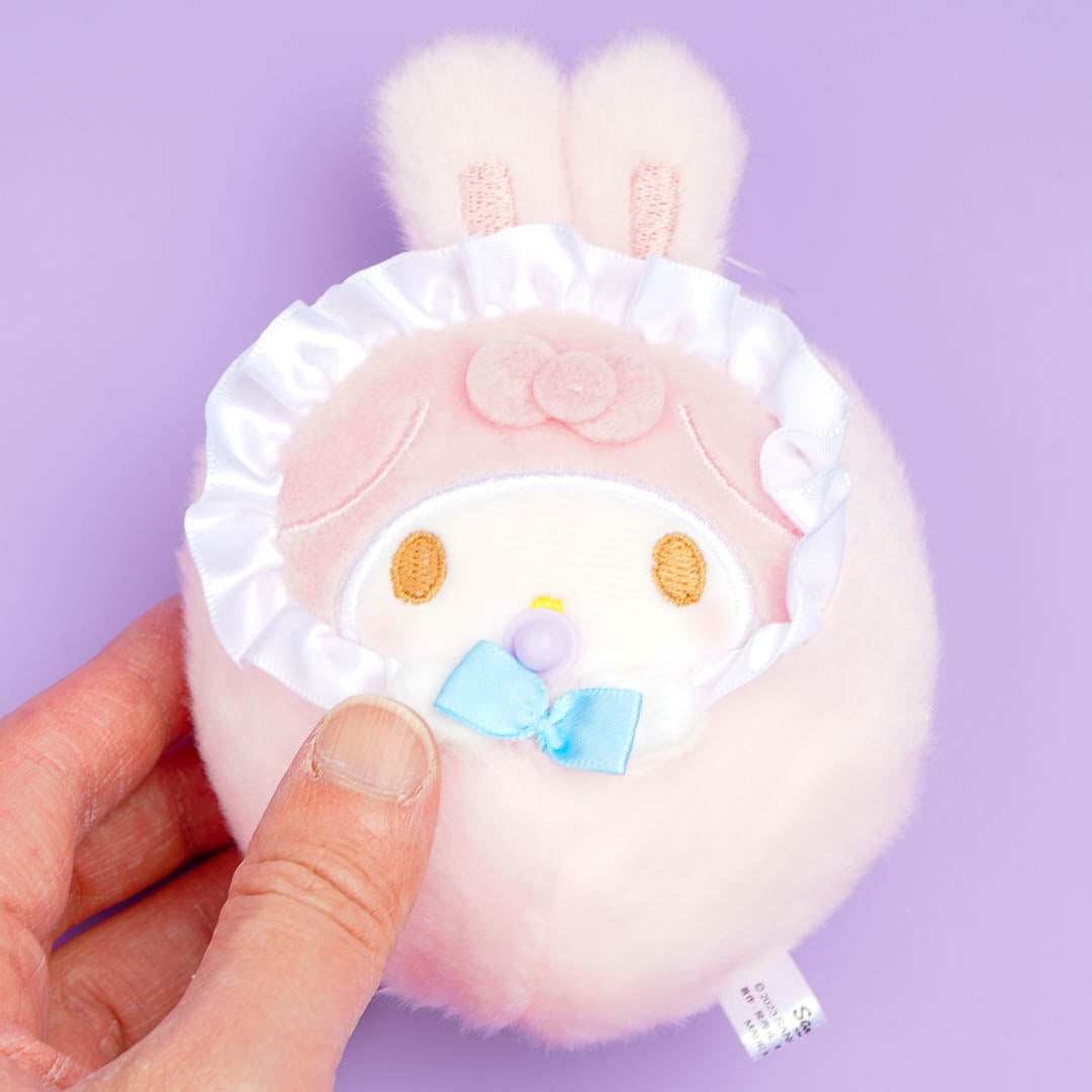 This small-sized My Melody is wearing a super cute pink bunny baby swaddle — complete with a pacifier! Snuggle with this plushie charm when you take a nap or attach it to your favorite backpack using the detachable ball chain.