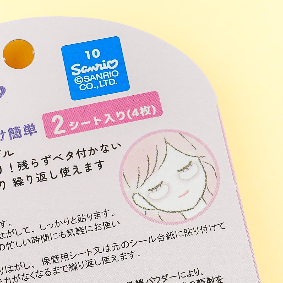 This super kawaii under-eye mask pack features a print of My Melody! Made from skin-friendly adhesive gel, this under-eye mask keeps your eyes feeling refreshed even after peeling it off. Each mask has a nice heat retention effect with infrared powder. You can use it repeatedly as long as the adhesive keeps sticking!