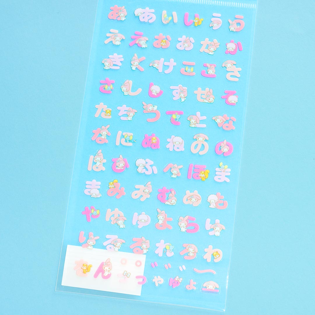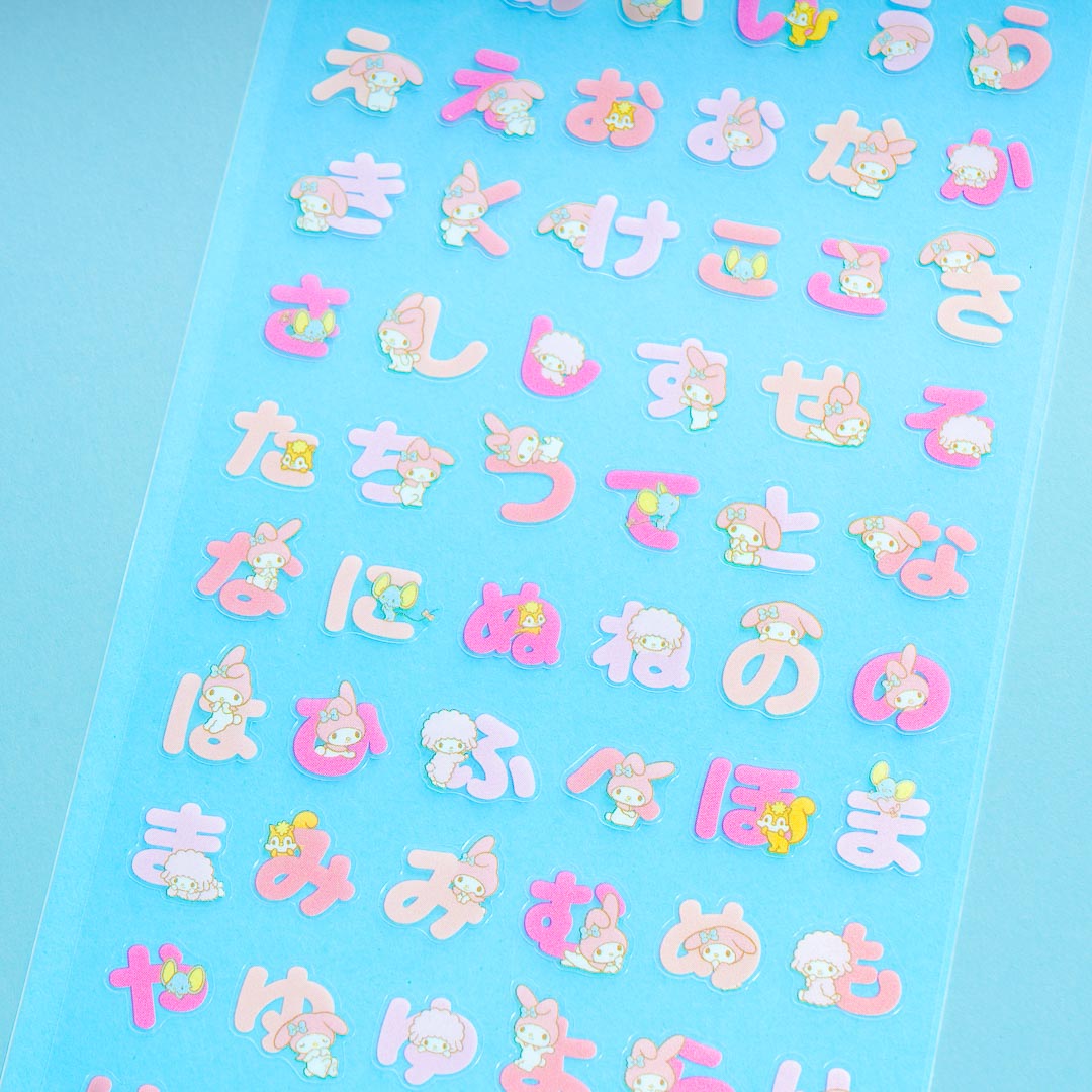 Spend the afternoon embellishing your planner with this super kawaii sheet of hiragana stickers. They showcase My Melody and My Sweet Piano playing around with the Japanese letters! Use these stickers to write fun Japanese phrases and messages.
