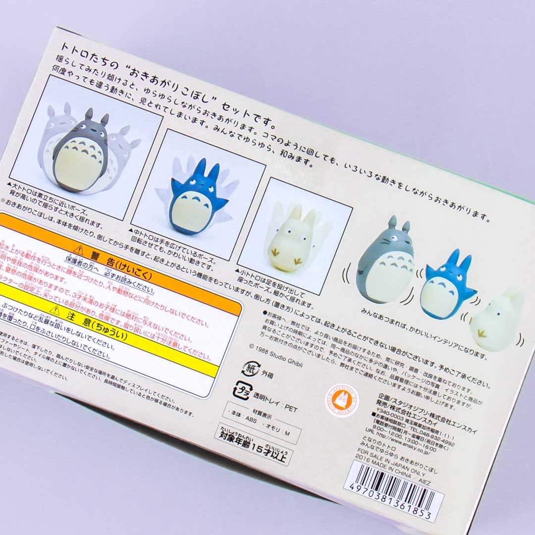 Have a blast playing with Totoro and his friends using this super cute roly-poly toy set! The pack includes Totoro, Chibi-Totoro, and Chu-Totoro figures. Each piece has a round bottom that makes a continuous rolling motion once pushed.