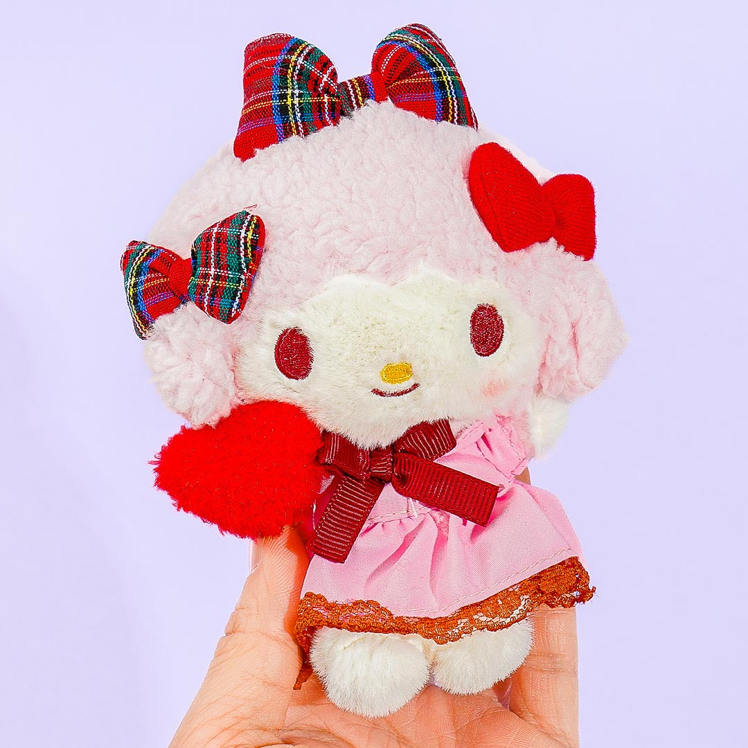 Have fun playing with this medium-sized My Sweet Piano plushie! It looks extra cuter with checkered ribbons and a fluffy heart. You can also attach it to your bag using the ball chain that comes with it!