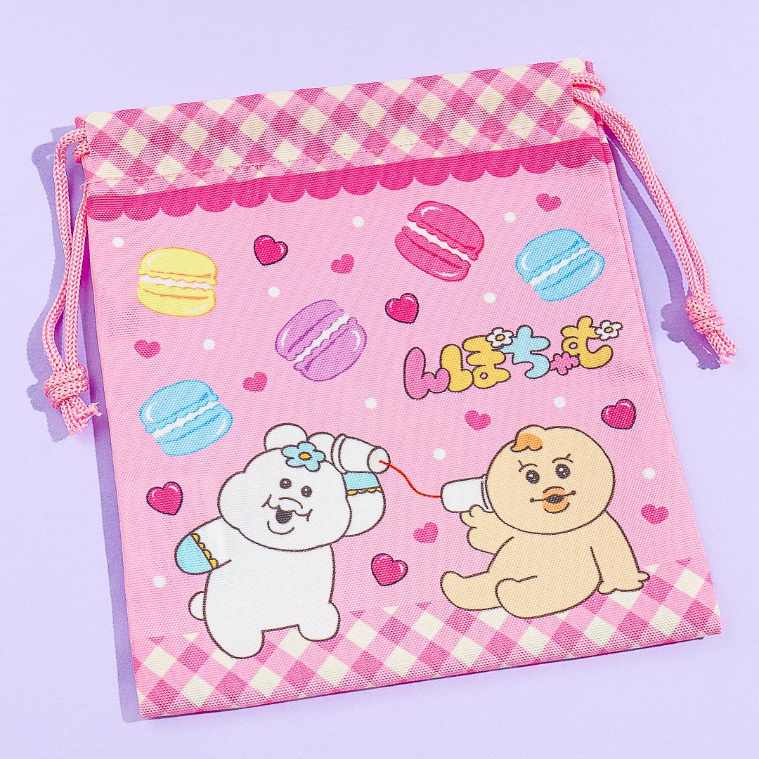 Store your trinkets inside this super kawaii drawstring pouch! It features cute prints of BFFs Npochamu and Kimimaro with colorful macarons. Simply pull the strings to close the bag!