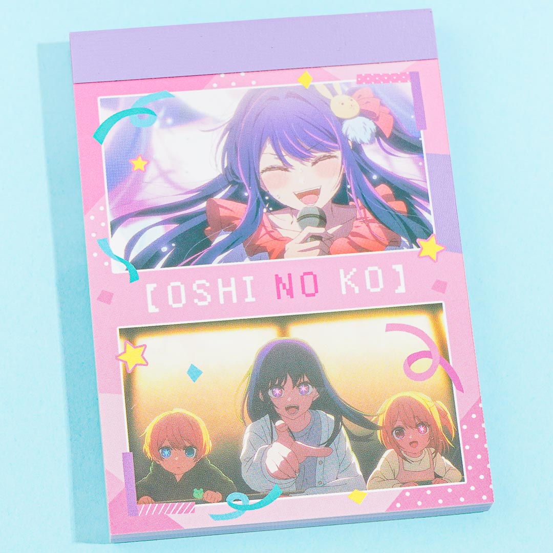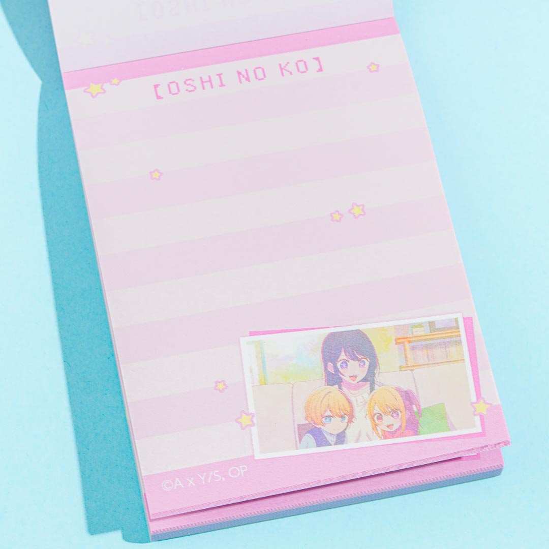 Write your to-do list in this super cute memo pad. It looks like a mini scrapbook featuring illustrations of the Hoshino family from the manga series, Oshi No Ko.