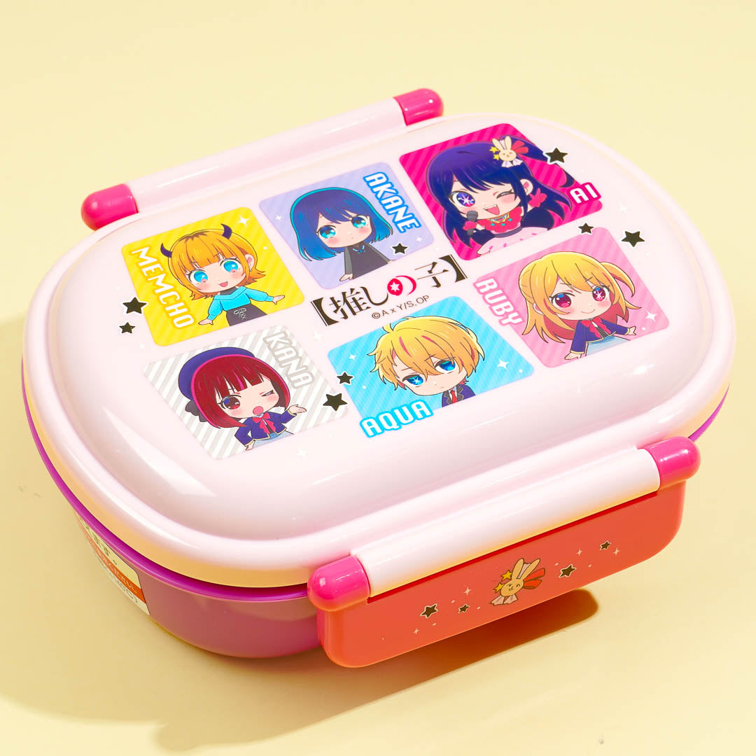 Serve your bento meal in this cute antibacterial lunch box! It features the idols from the anime Oshi no Ko. You can use the removable partition and the half container to add more than one type of food inside the bento.  It even has a raised lid with double snap locks and a silicone gasket to seal your meal!