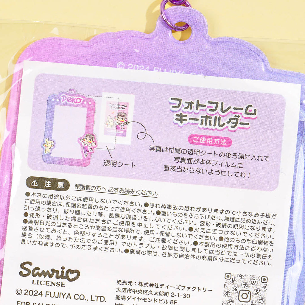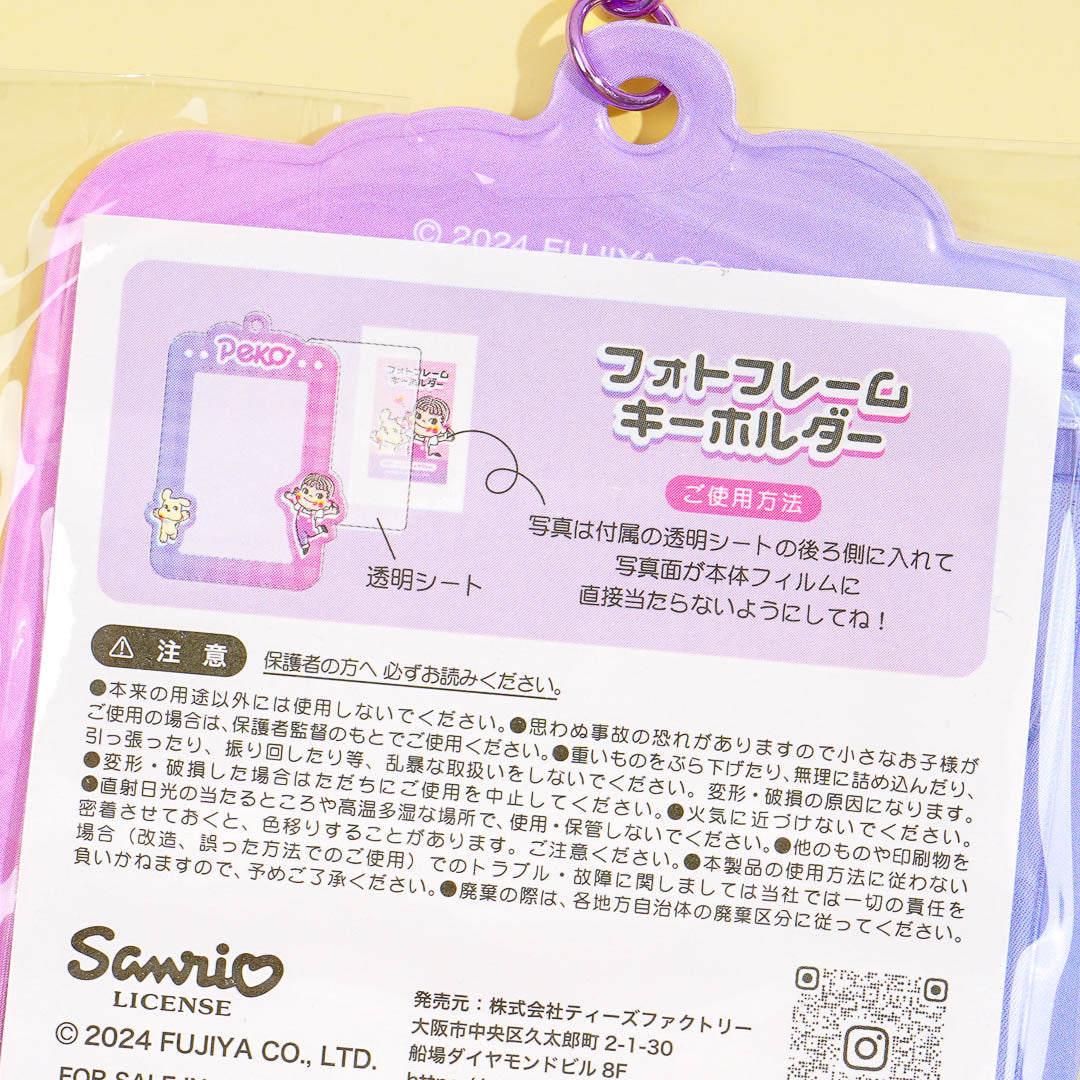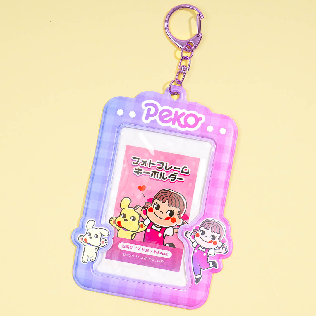This super cute card holder allows you to carry around your favorite photo card! The gradient frame features an illustration of Peko-chan and her puppy, Dog. You can attach it to your backpack with its metal clip.