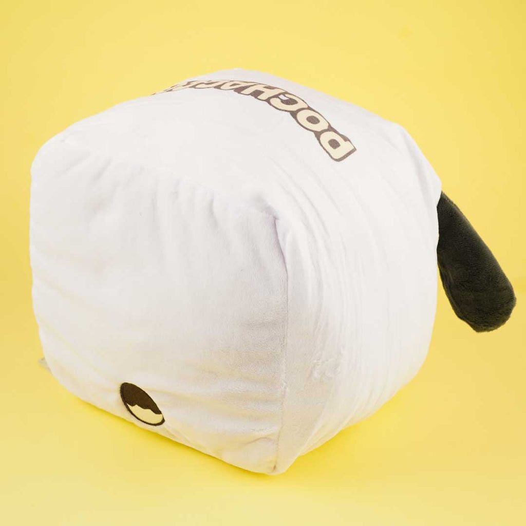 Decorate your bedroom with this cube-shaped Pochacco cushion! Pochacco's face and tail have cute embroidery details. It also has a print that says "Pochacco" on its top side.