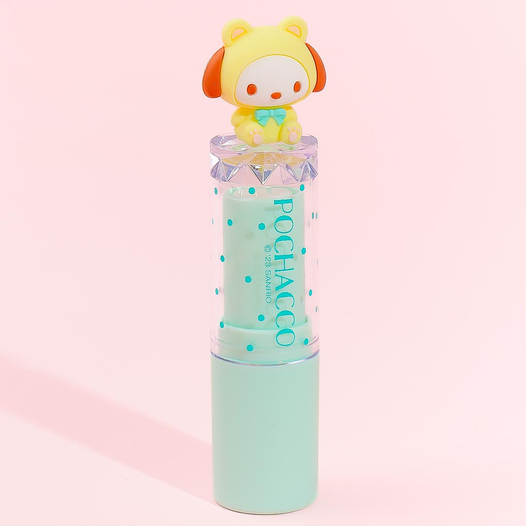 This cute tube of lip cream has Pochacco sitting on top of its cover while wearing an adorable bear outfit! Add this lip cream to your cosmetic kit. It keeps your lips nice and plump with its hydrating ingredients like shea butter!