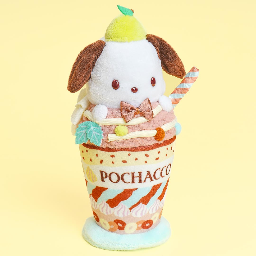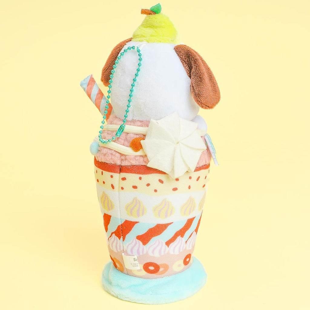 Have fun playing with this kawaii medium-sized plushie! It resembles a yummy-looking parfait with Pochacco on top. This comes with a removable ball chain so you can attach it to your bag.