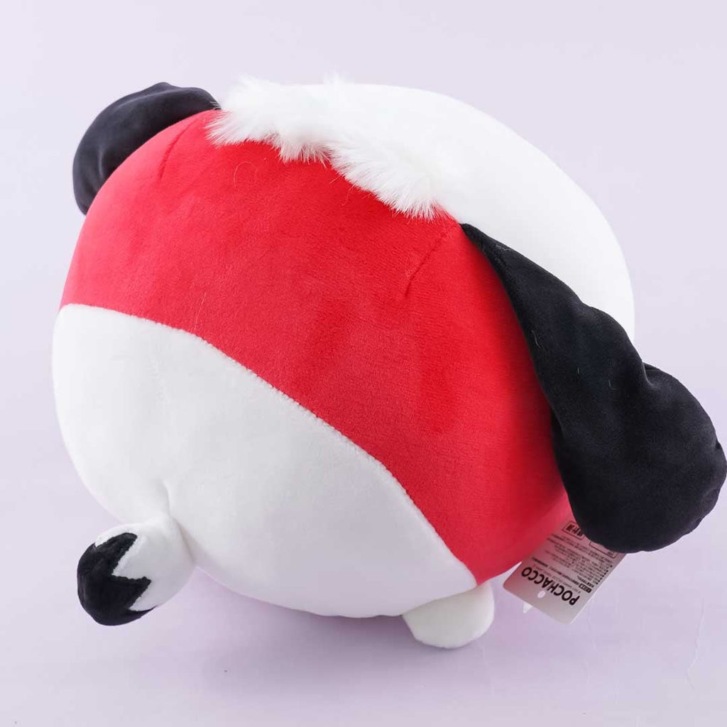 • A cute medium-sized Pochacco plushie lying on its belly