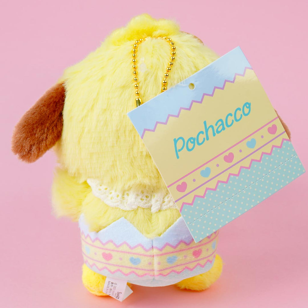 Have fun playing with this cute Pochacco plushie! The medium-sized stuffed toy is dressed in an Easter chick costume. It also comes with a removable ball chain that you can attach to your backpack.