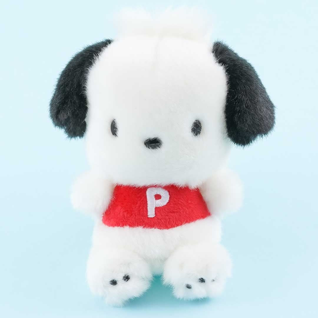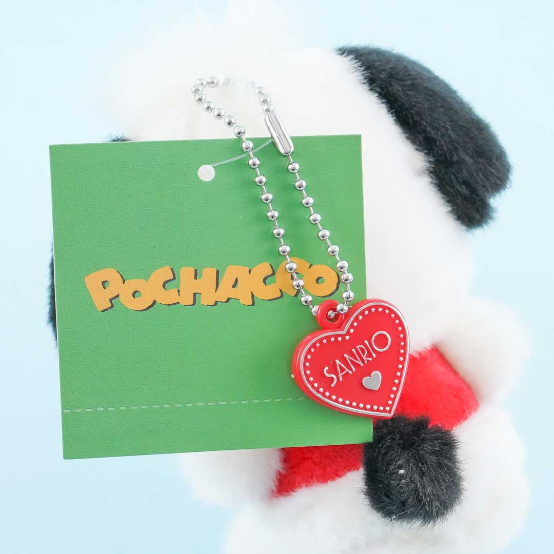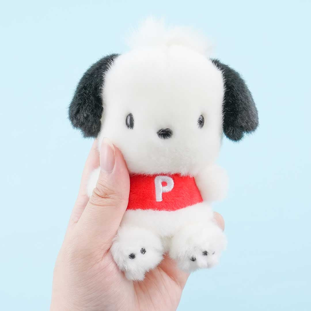 Add this super cute Pochacco plushie wearing a t-shirt with the letter “P” to your collection! This medium-sized furry cutie comes with a detachable ball chain that has a heart-shaped Sanrio charm so you can use it to accessorize your backpack as well.
