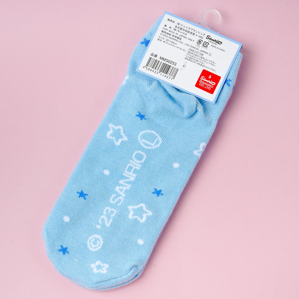 Go to your next slumber party wearing this pair of kawaii socks! It features a cute print of Pochacco with a starry background and a bowtie on top.