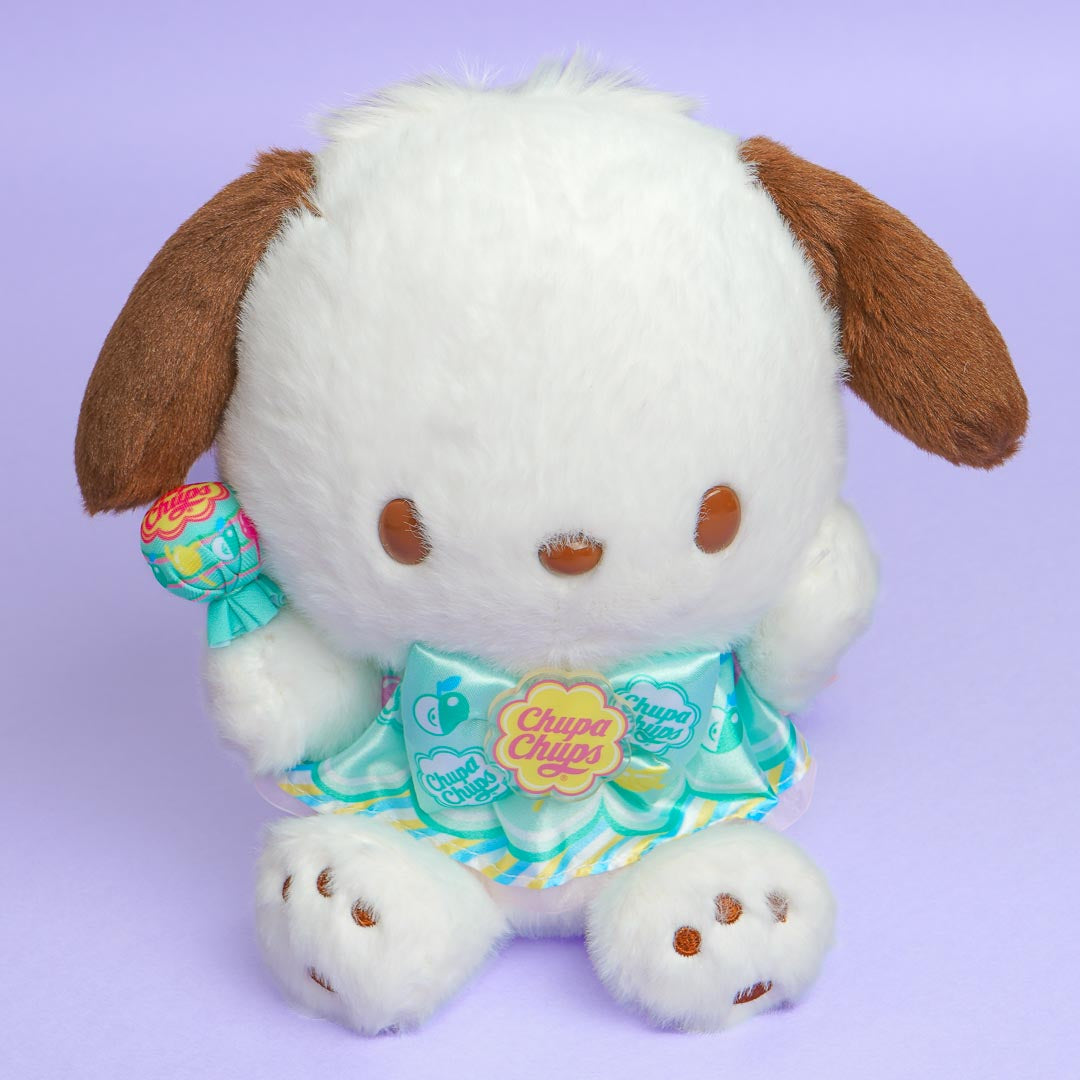 Add this super kawaii Pochacco plushie to your collection! This medium-sized cutie is wearing a colorful shirt that’s inspired by the popular colorful lollipop brand, Chupa Chups! This plushie is also holding a wand that looks like a Chupa Chups lollipop as well!
