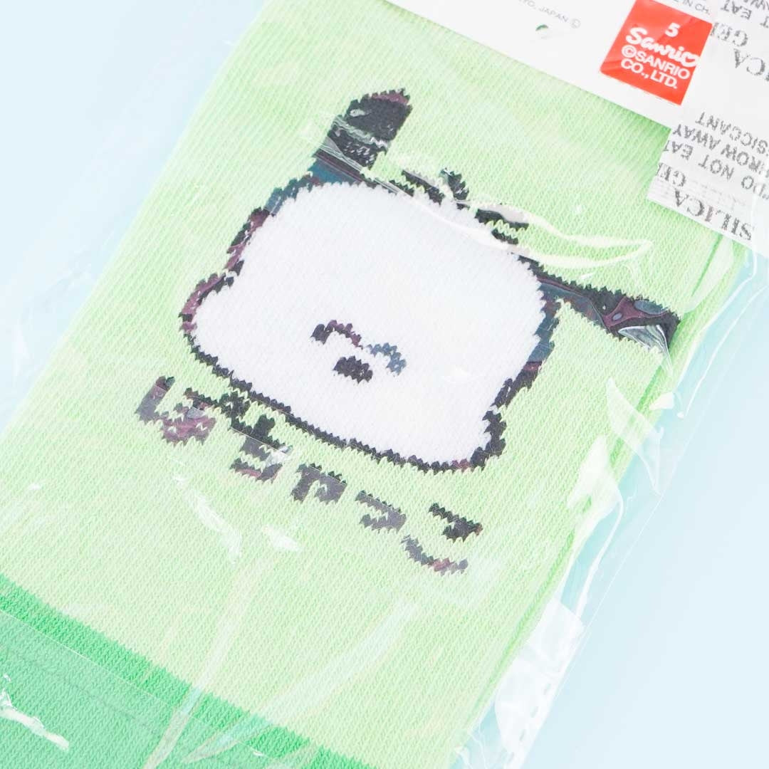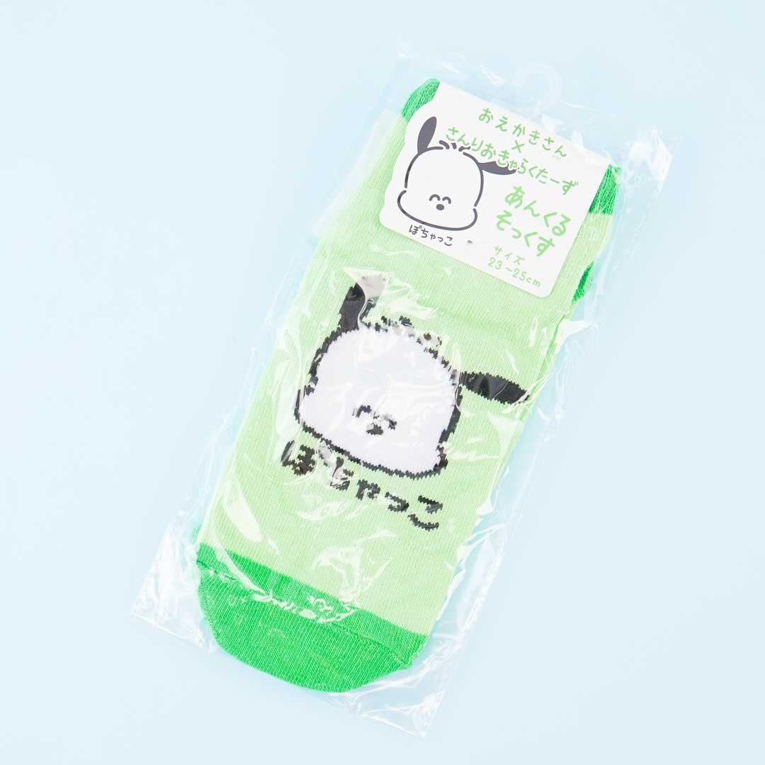 A pair of cute ankle socks with doodle-inspired illustrations of Pochacco