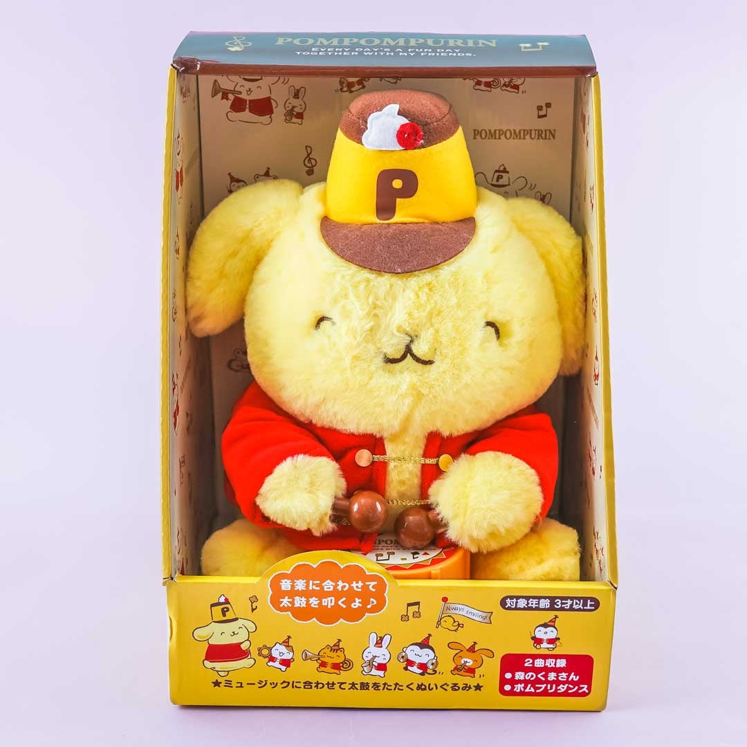 A super kawaii medium-sized Pompompurin plushie that moves while beating the drum to music