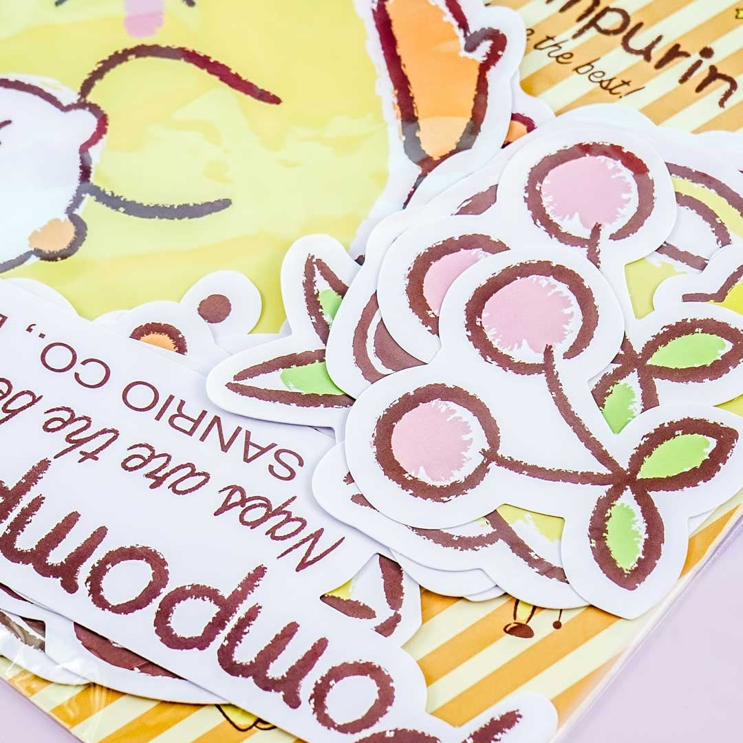 Decorate your notebooks using these super cute die-cut stickers! This set features kawaii illustrations of a dreaming Pompompurin with cherries and other doodles.