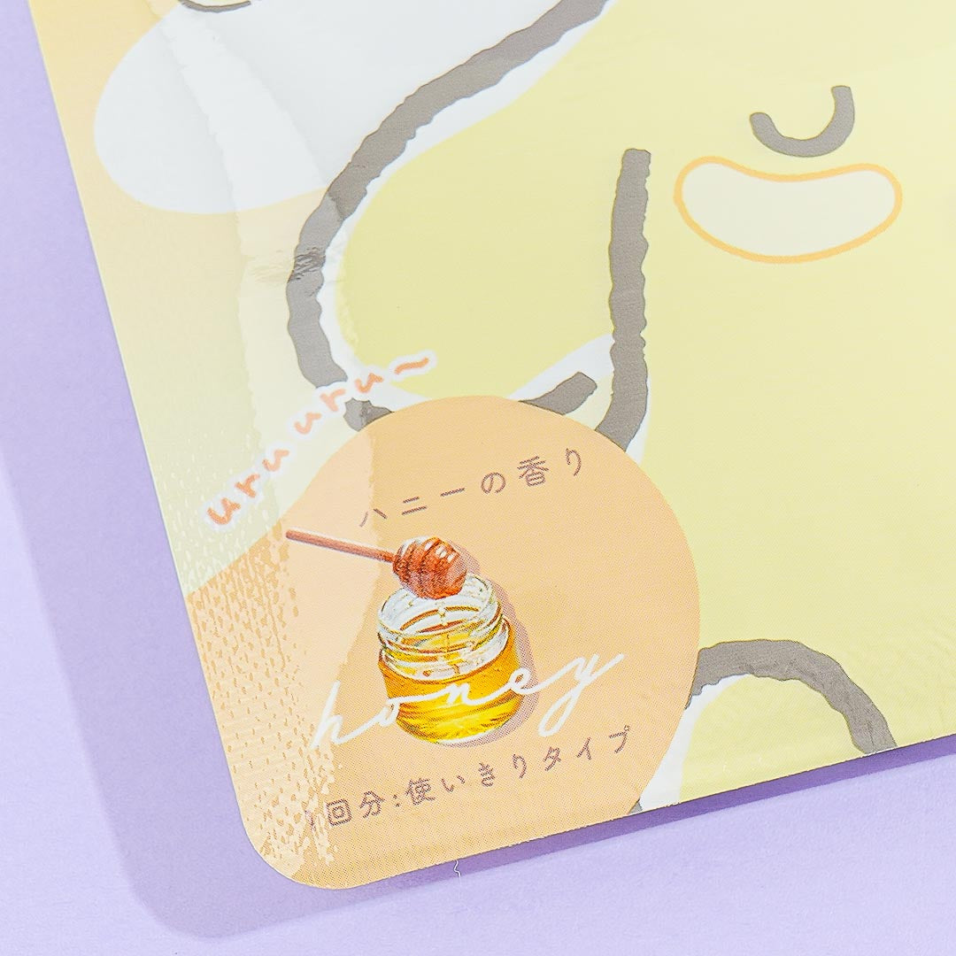 Let Pompompurin help you pamper your puffy eyes using these sweet-scented moisturizing sheets! Place them carefully under your eyes for 10 to 15 minutes while you relax.