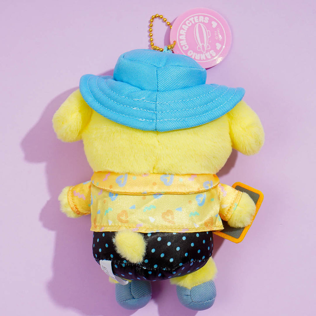 Bring this super cute Pompompurin plushie on your next trip! It's wearing a cute tourist outfit complete with a hat and a phone for taking pictures. You can easily hang it on your backpack using the removable ball chain.