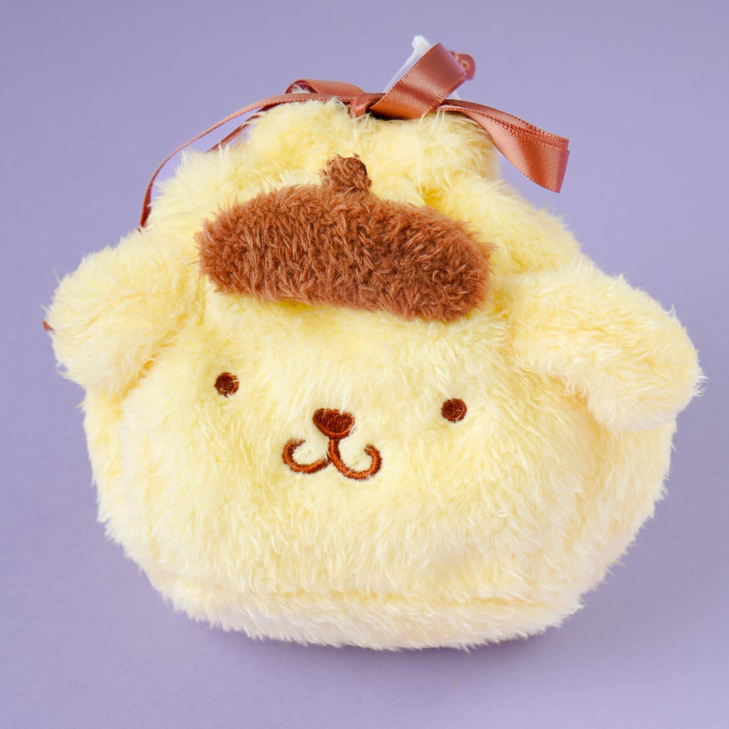 Pompompurin Fluffy Face Drawstring Pouch is backordered and will ship as soon as it is back in stock.