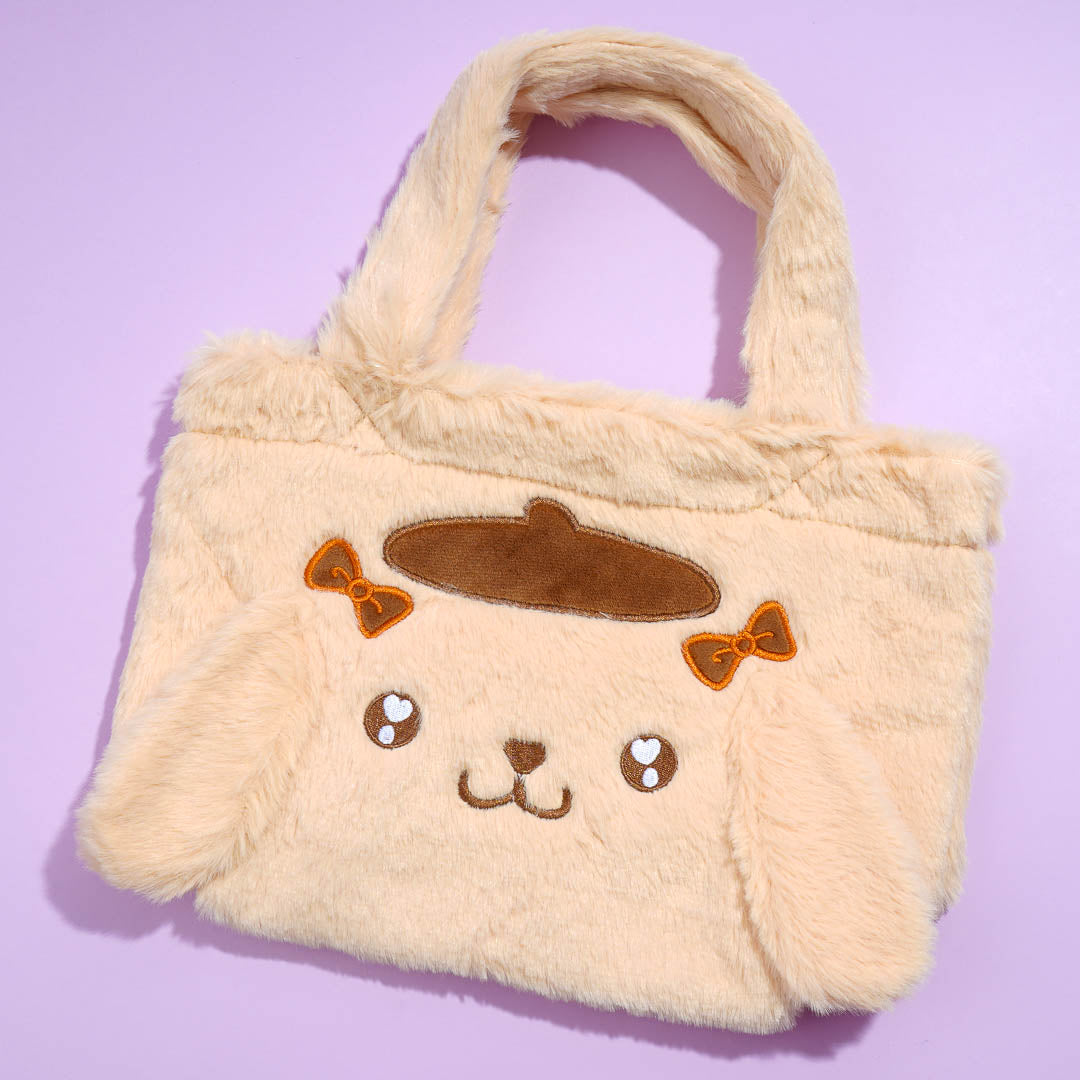Complete your kawaii look with this super cute and fluffy handbag! It showcases a cute embroidery of Pompompurin's face with pop-out ears. This bag features a snap button closure and an inner pocket.