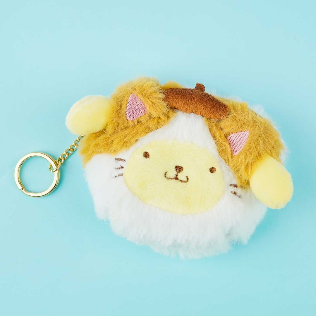 This super kawaii pouch features Pompompurin wearing a cat costume! Use it to store your trinkets and other knick-knacks. It has a zipper closure and a metal keyring.