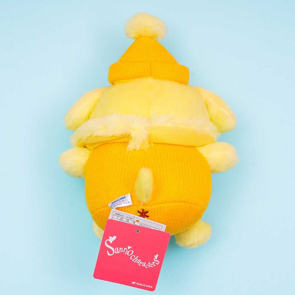 This cute Pompompurin plushie is the perfect buddy to spend cozy winters with. It's wearing a comfy knitted outfit! Spend some time snuggling together with this medium-sized cutie.