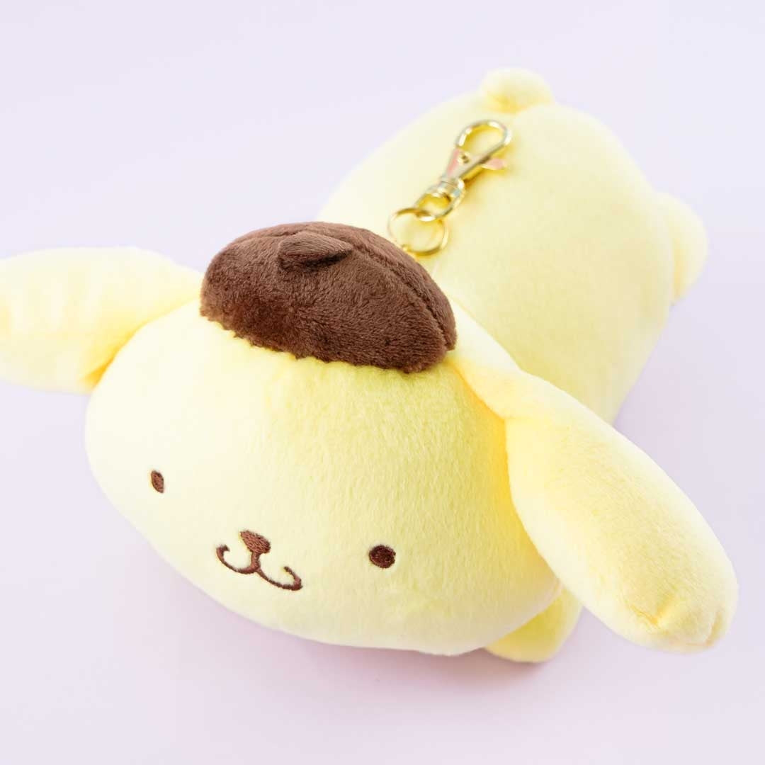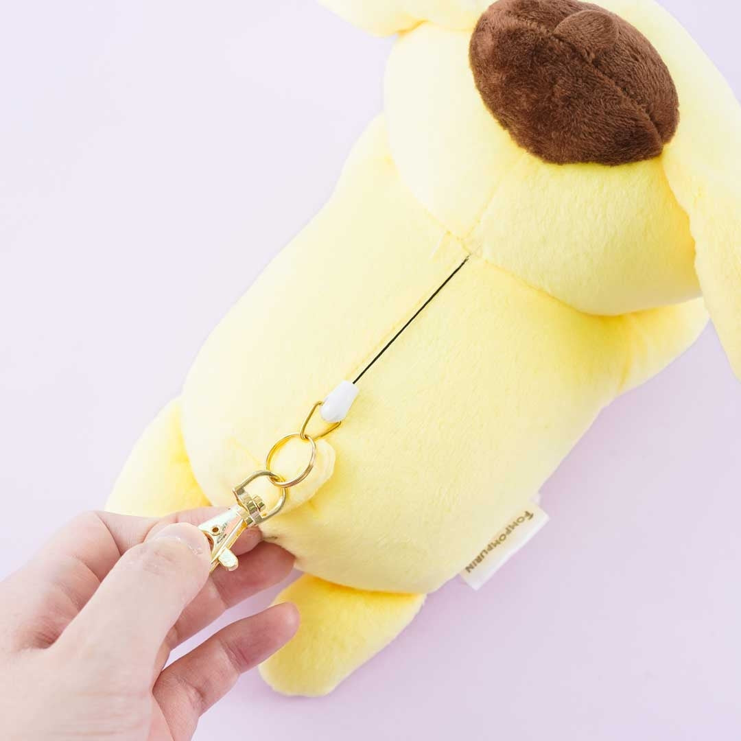 This Pompompurin plushie pass case is perfect for keeping your ID or bus pass! It's lying down flat on its belly like a cute little doggie. You can attach this pass case to your bag thanks to its stretchable reel.