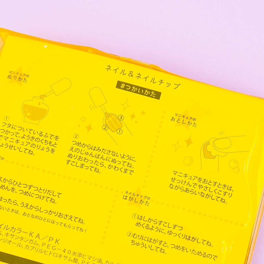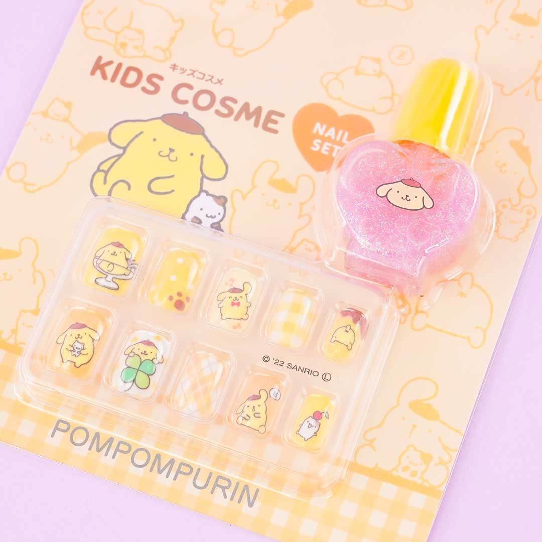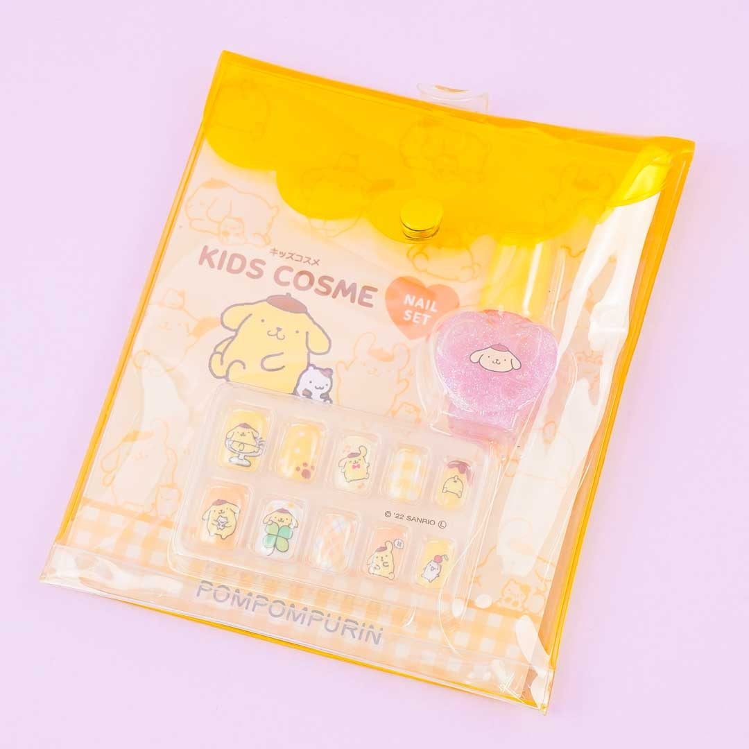 Make your hands look fancier by using this kawaii nail set! It comes with stick-on nail tips in a clear case with illustrations of Pompompurin and his BFF, Muffin the hamster! A bottle of glittery pink nail polish and a transparent carrying pouch is also included! The set is highly recommended even for children as these can be removed by carefully rubbing your nails with soap.