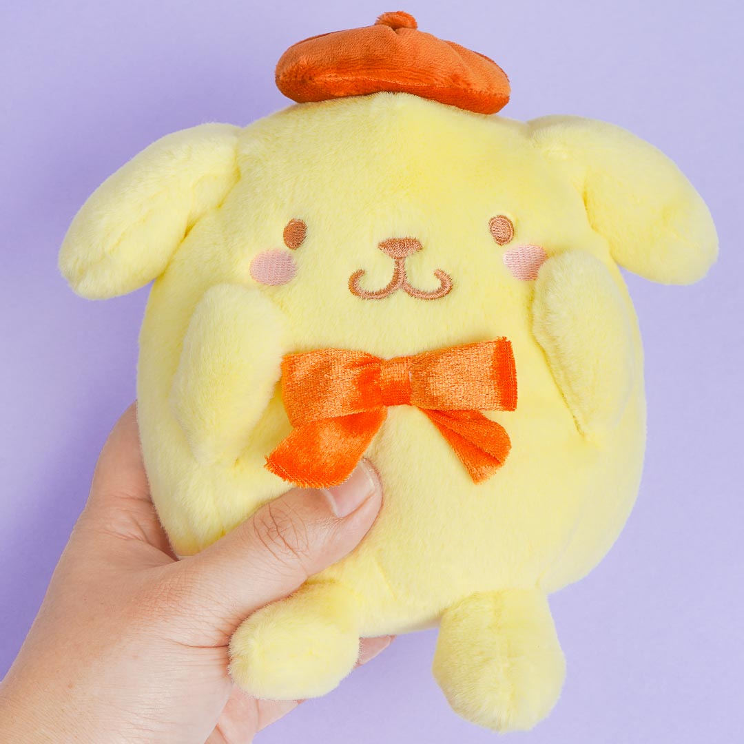 Give this shy Pompompurin plushie all the comforting cuddles that it needs. This medium-sized cutie is putting its paws up to its blushing face! It's made of nice, soft material that's perfect for hugging.