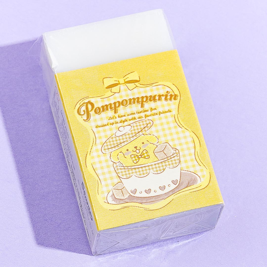 This eraser is illustrated with Pompompurin playing inside a teacup. Use this kawaii eraser to keep your notes nice and clean. When you erase your notes the scraps that come from the eraser stay together and don't scatter!