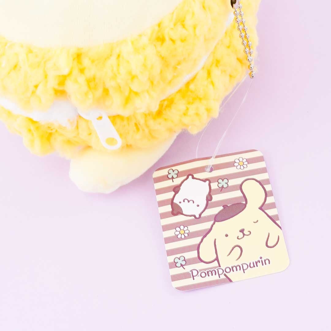 Keep your earphones from getting tangled by placing them inside this wooly pouch! It’s shaped like a macaron and features Pompompurin! The round zippered purse comes with a convenient detachable ball chain.