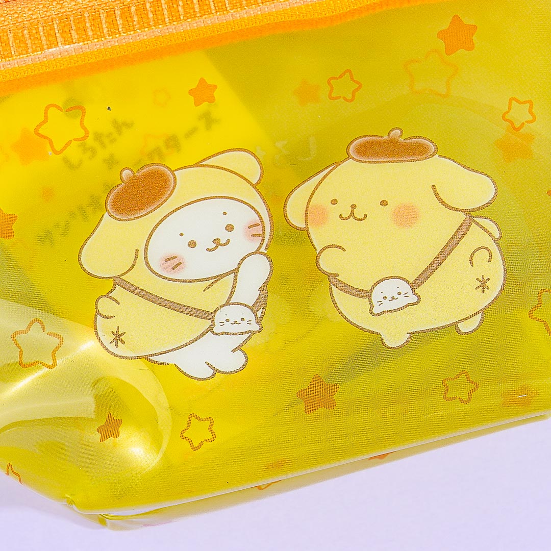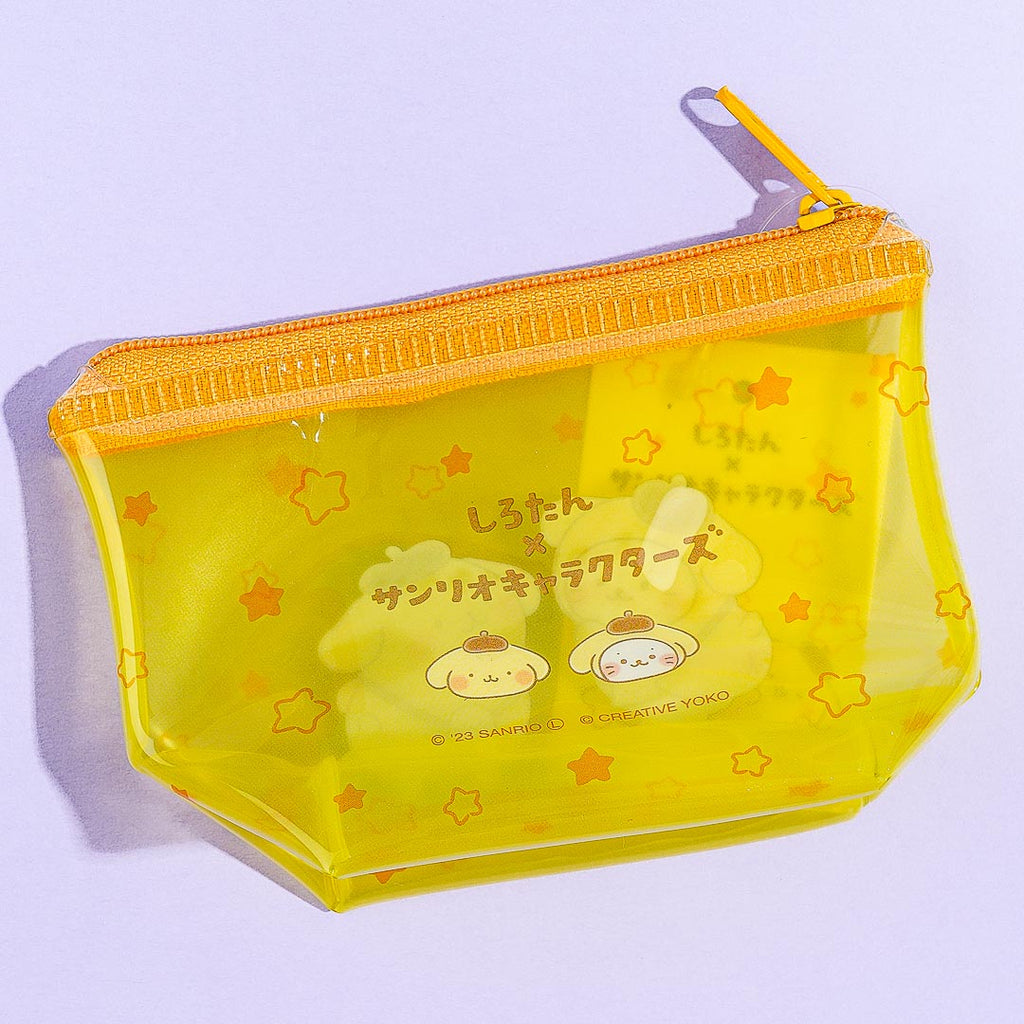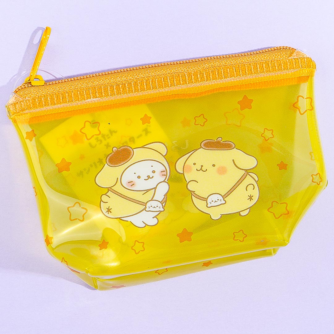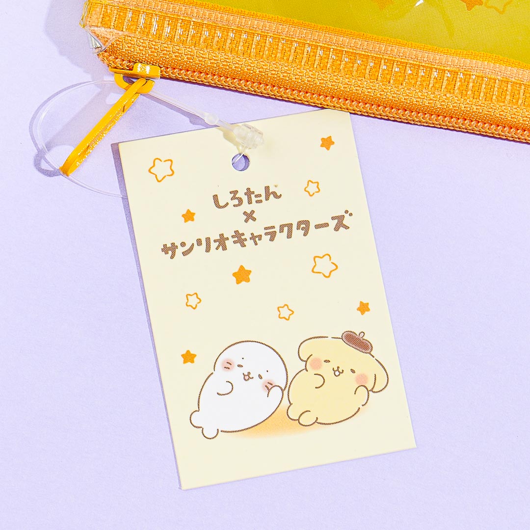 Store your charms inside this super kawaii transparent pouch. It features a print of Pompomurin hanging out with Sirotan who's dressed just like him! This pouch comes from a collaboration between Sanrio and Sirotan.