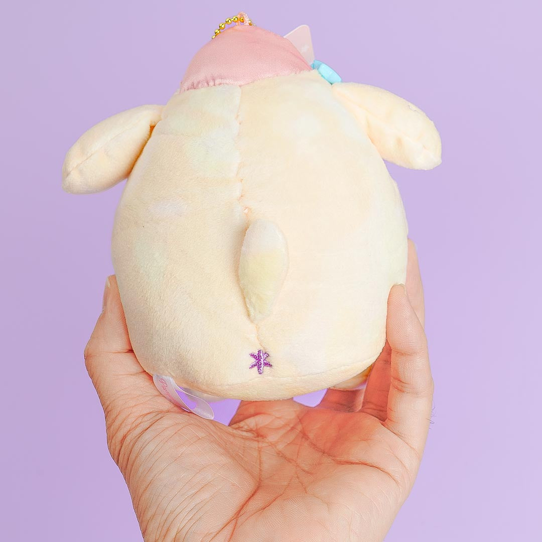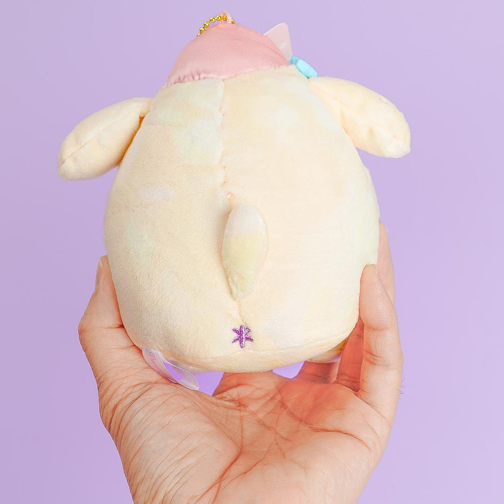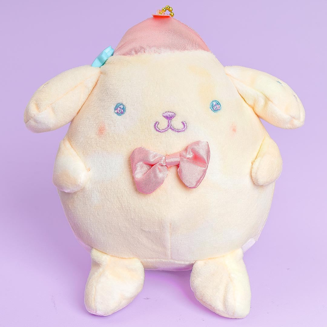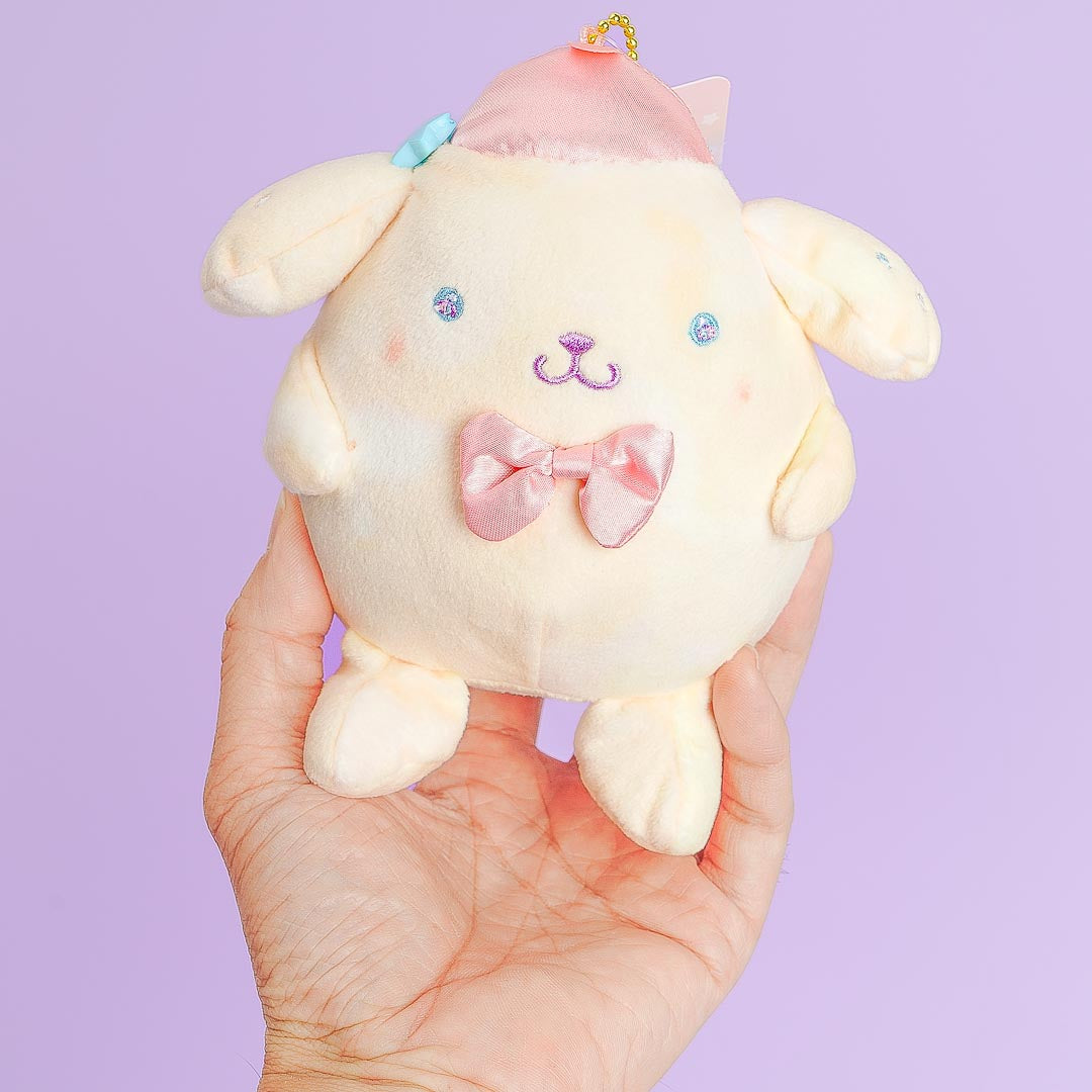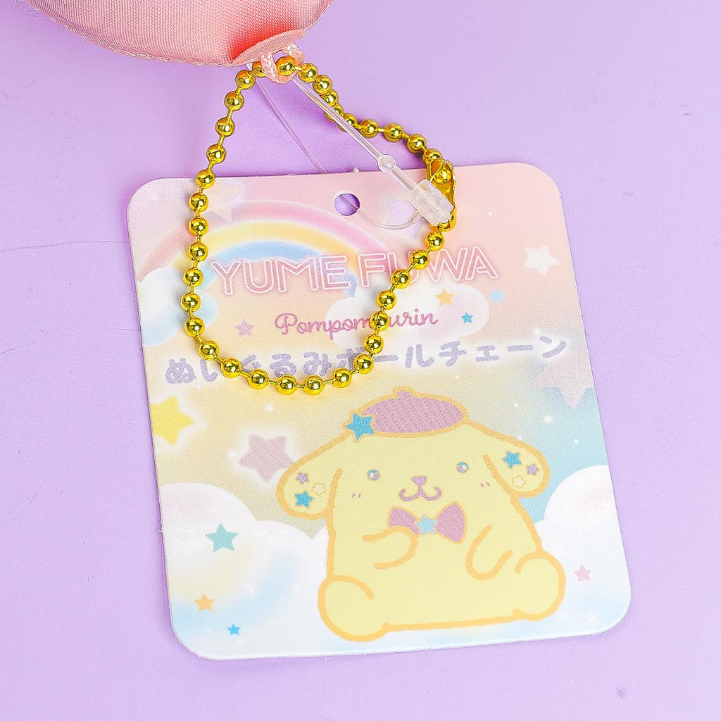 This cute Pompompurin plushie has a "yume fuwa" or light and dreamy design. It's medium-sized and squishy so it's fun to play with. You can also attach it to your bag using the ball chain for a touch of kawaii.