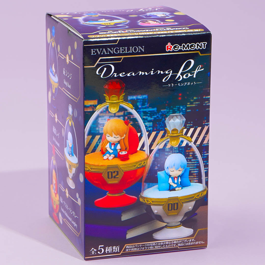 The Evangelion EVA pilots in chibi form are taking a long-needed rest inside a special dreaming pot! Decorate your bedroom with any of these cute figures.