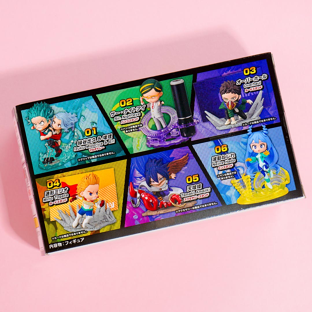 Available designs: Izuku Midoriya & Eri multi-tray, Sir Night Eye hanko stand, Overhaul card stand, Mirio Togata card stand, Tamaki Amajiki accessory stand, Nejire Hado pen stand