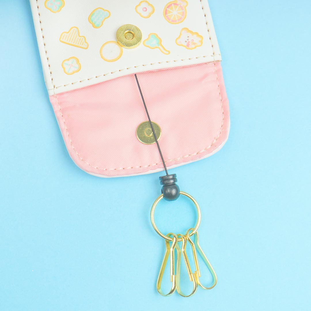 This super cute key case features kawaii illustrations of Rilakkuma and friends surrounded by yummy desserts. It comes with a crab hook and an extendable reel cord so you can use your keys while the case is attached to your bag!