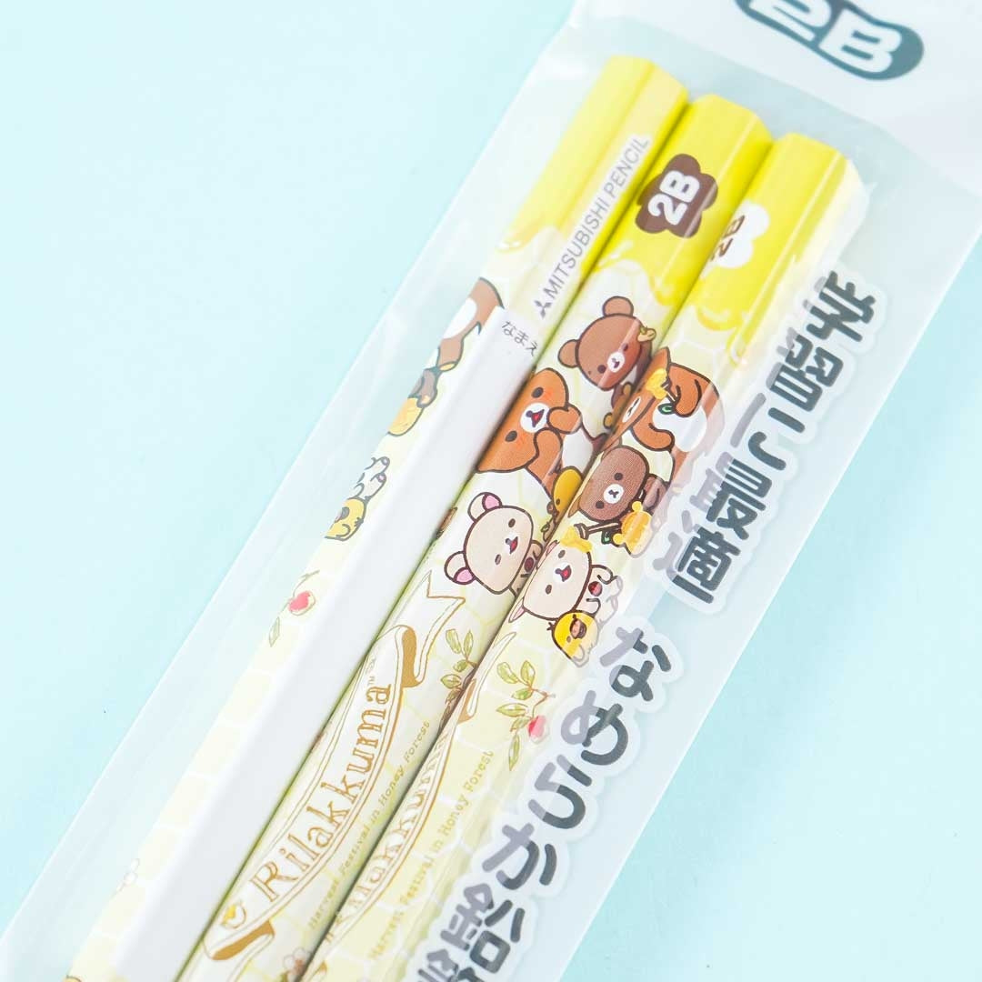 • A super cute set of 2B pencils showcasing Rilakkuma and his friends eating honey