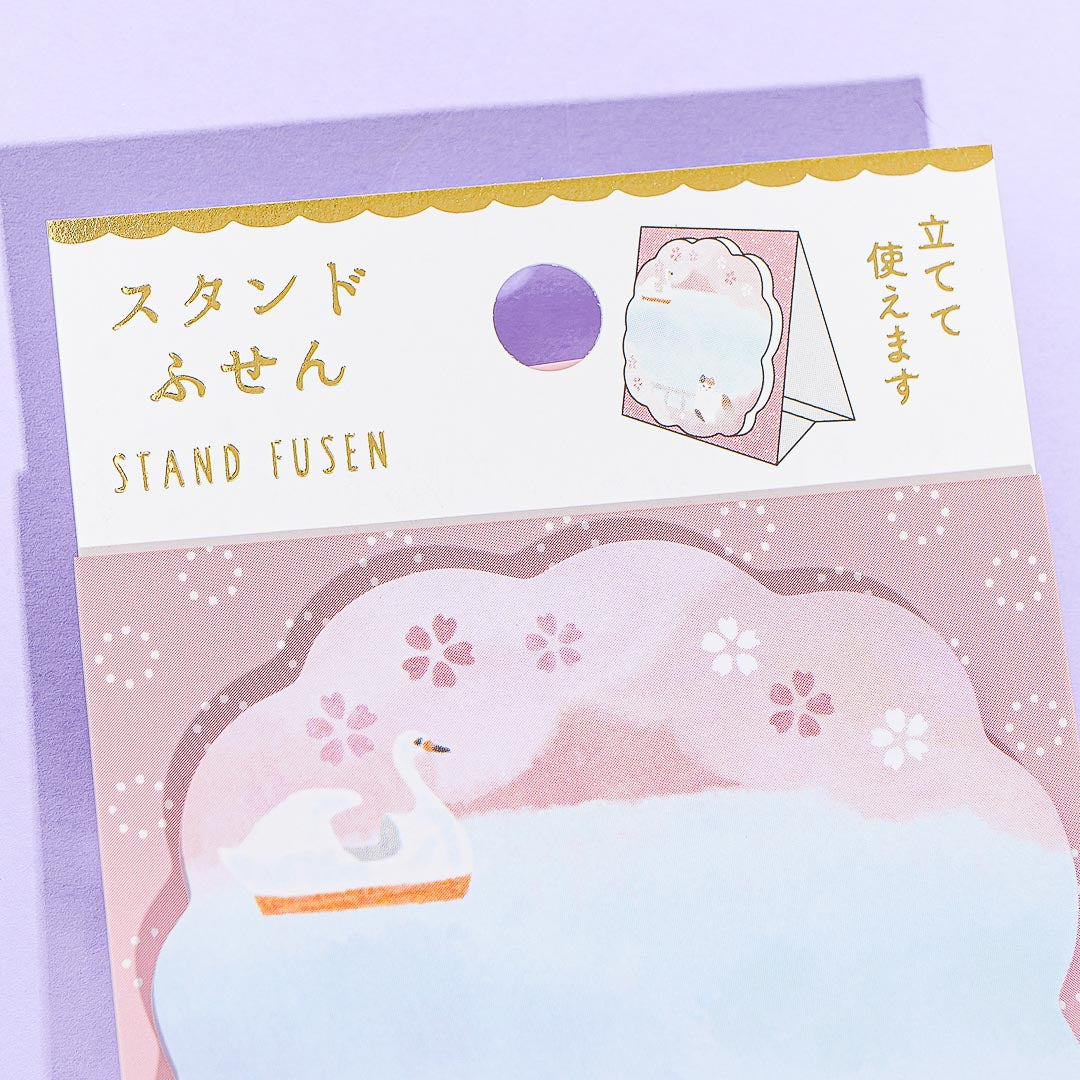 Write short and sweet messages to your loved ones using this sakura flower-shaped sticky notepad! It comes decorated with a super cute illustration of a Calico cat looking at cherry blossoms, a huge, and Mt. Fuji! Fold the cardboard and turn it into a stand for your kawaii sticky notes!