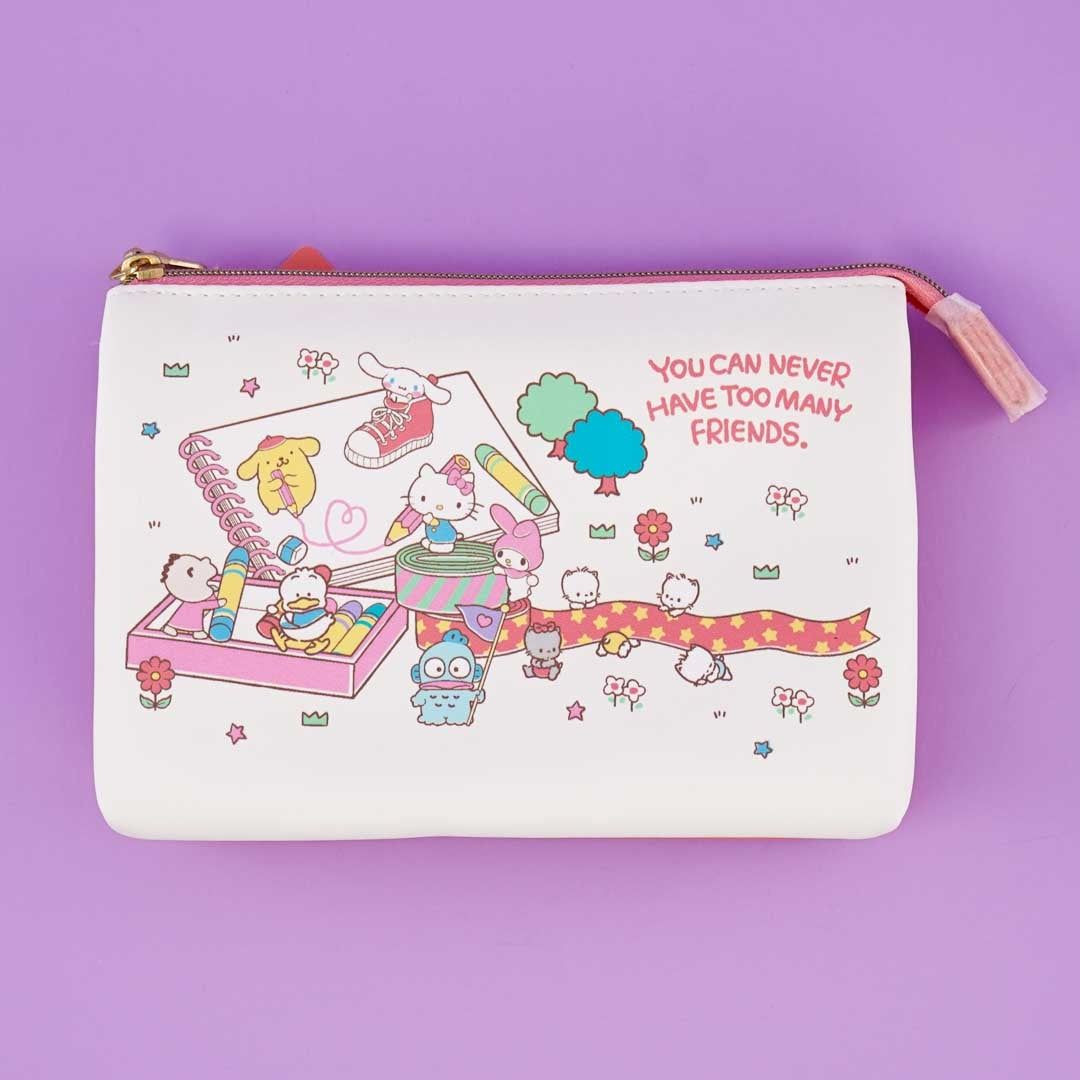 A super cute pouch featuring the Sanrio Characters creating art in a park