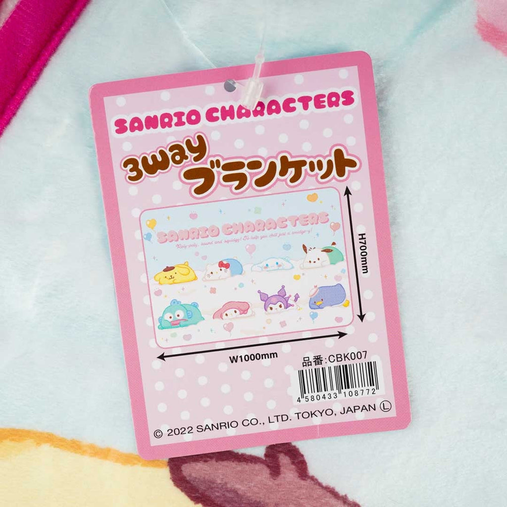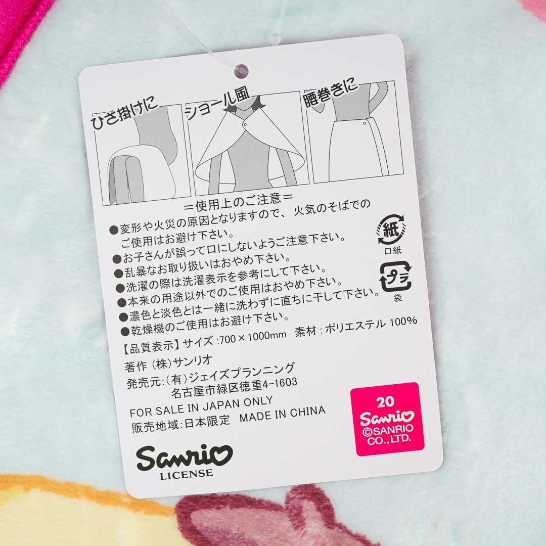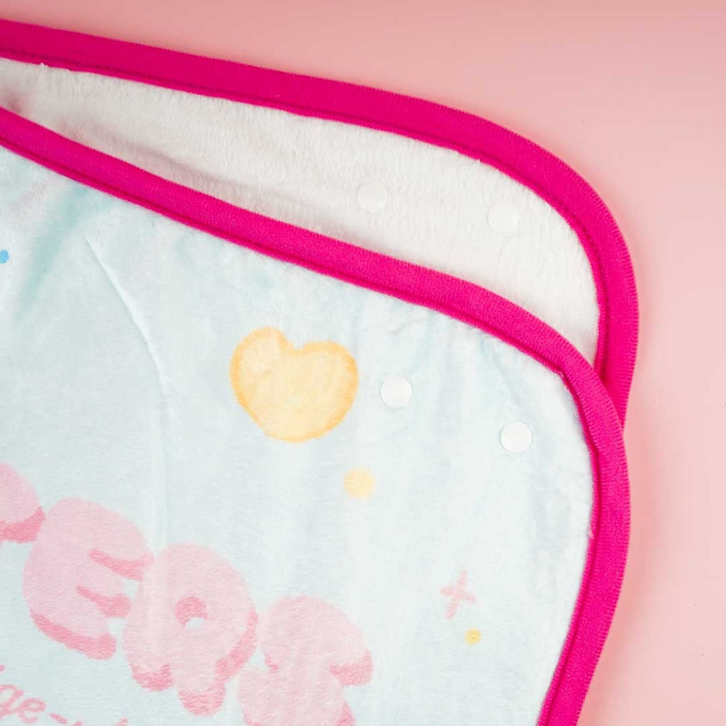 Cuddle up in bed together with the Sanrio gang. This blanket showcases a print of different Sanrio characters like Kuromi, My Melody, Pompompurin, and more. You can hang it on your shoulder or wrap it around your waist with the snap-on buttons.
