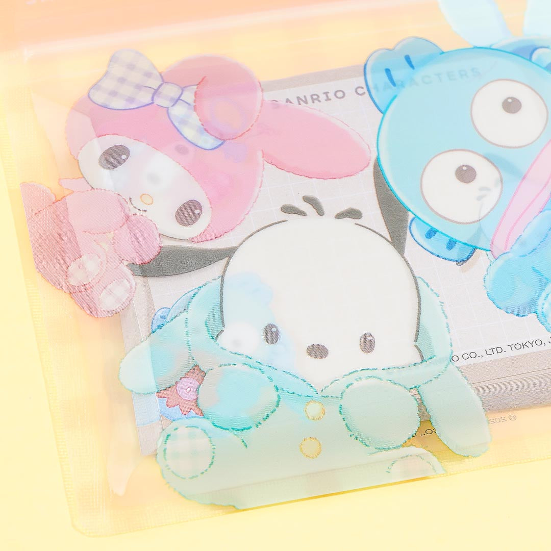 This super cute set of mini memo paper and zip plastic case is decorated with prints of Sanrio Characters wearing bunny onesies! Use each cute page to write your short messages.
