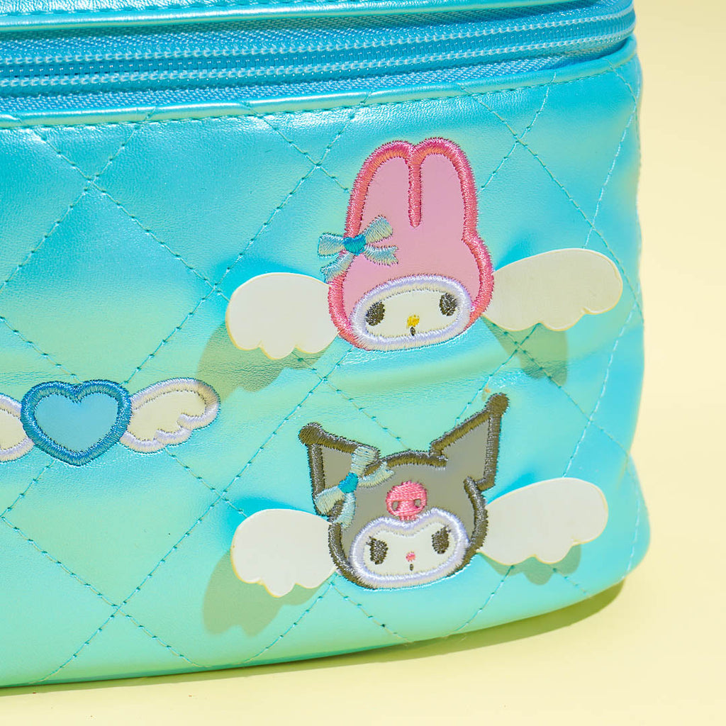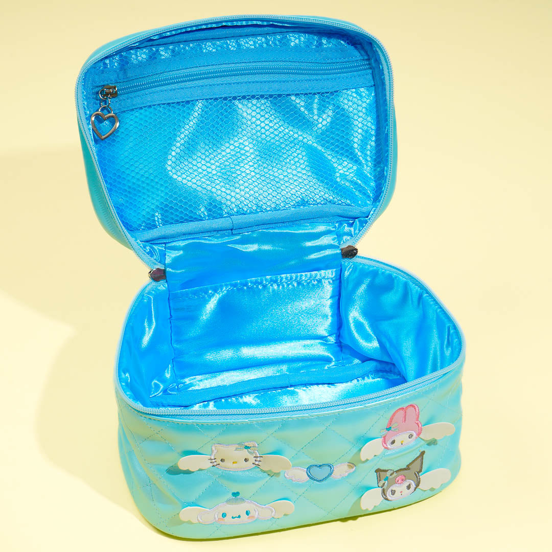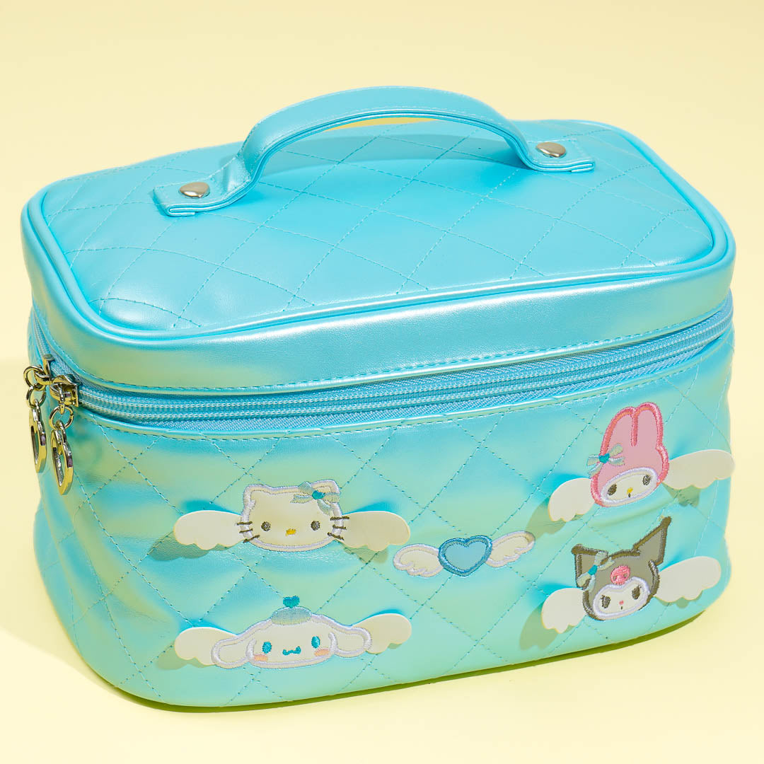 This kawaii vanity bag features the Sanrio Characters who look like dreamy angels. Use this case to store your makeup, brushes, and other beauty tools. It has a spacious compartment, double heart-shaped zipper closures, and an inner mesh pocket.