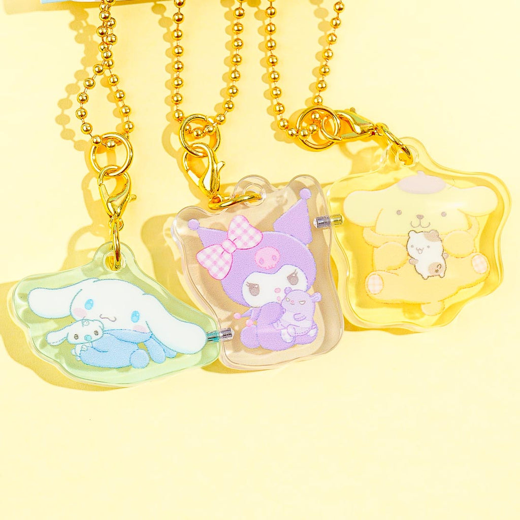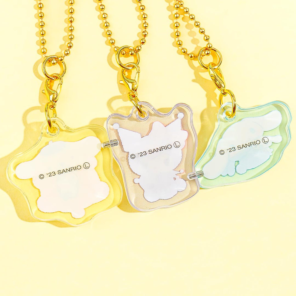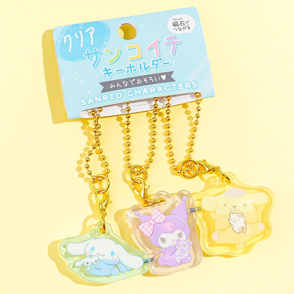 You and your buddies can have matching charms with this super cute set! Each die-cut acrylic charm features a Sanrio Character wearing a fluffy onesie. The charms are magnetic so they stick together!