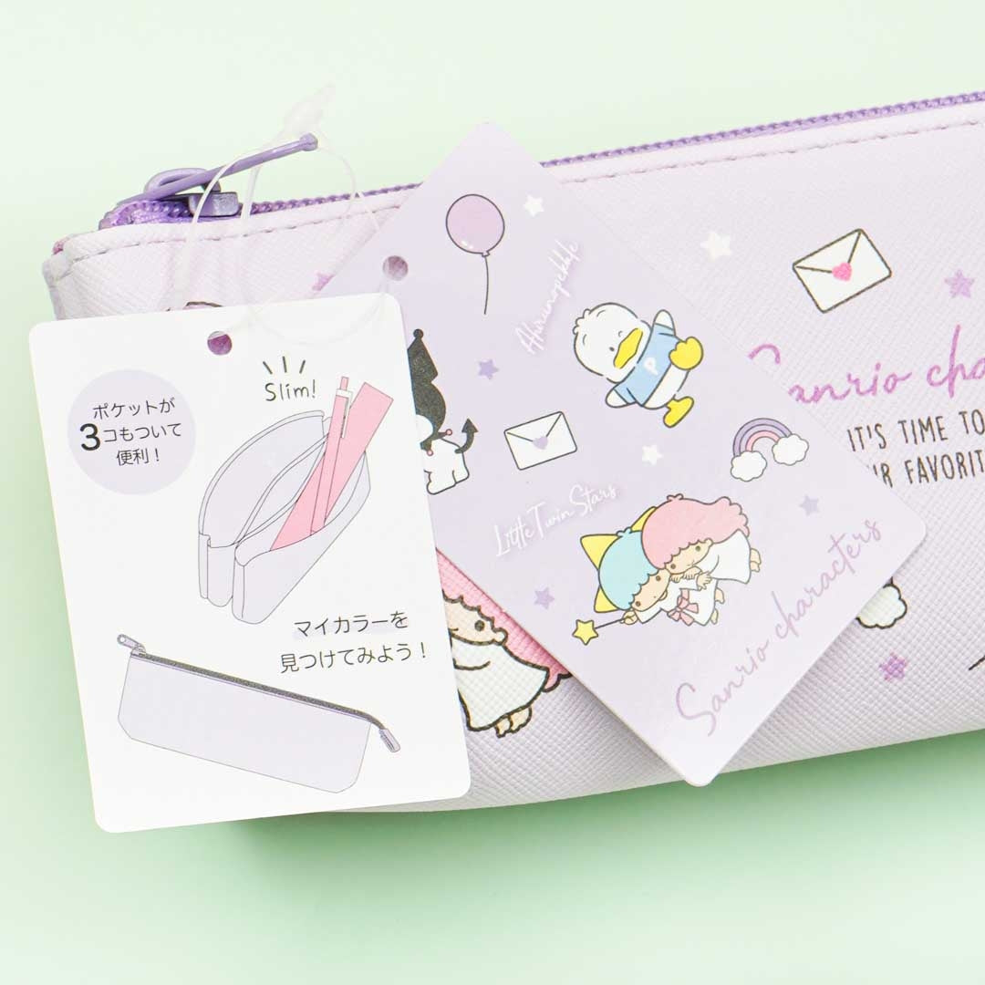 Organize your writing materials using this kawaii pen case covered in prints of Sanrio characters having a good time. It is shaped like a boat and has three pockets for all your storage needs.